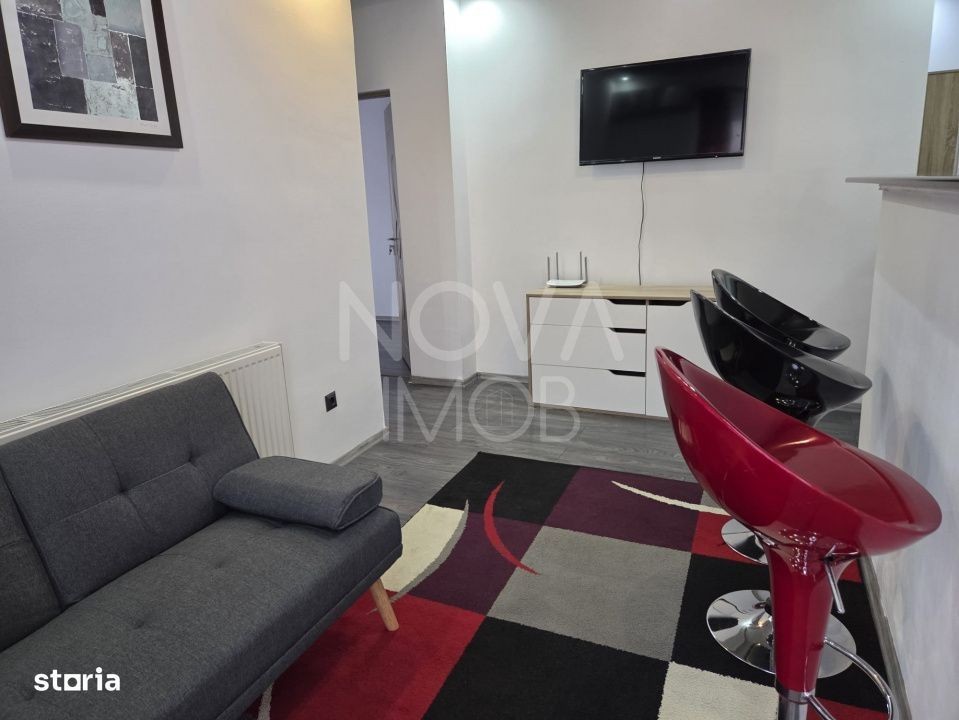 Agentia Nova Imob va propune spre inchiriere un apartament cu 2 dormitoare in suprafata utila de 50 mp, amplasat la etajul 4/4, situat pe Str. Liviu Ciulei, Compartimentare: living cu bucatarie open space, 2 dormitoare, baie, hol si balcon; Dotari: aer conditionat, frigider, plita pe gaz, cuptor electric, hot, TV, masina de spalat, cuptor cu microunde, filtru de cafea; Avantaje: - loc de parcare inclus in pret; - mijloace de transport la 5 minute de mers pe jos; - magazine alimentare; - locuinta moderna, mobilata si utilata; Pret: 380 Euro/luna + garantie Tel:
