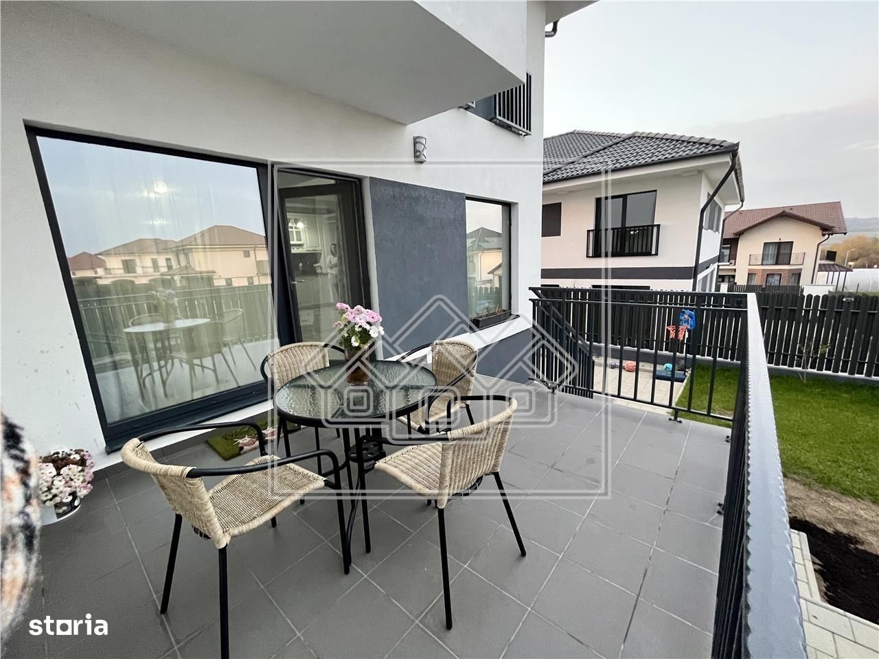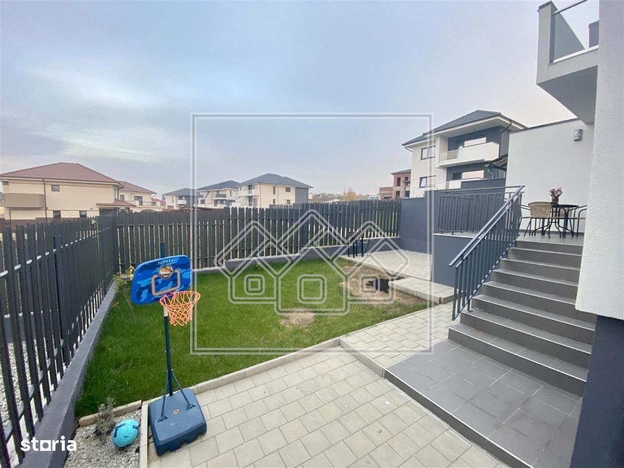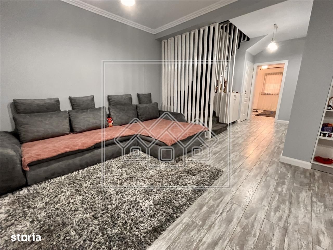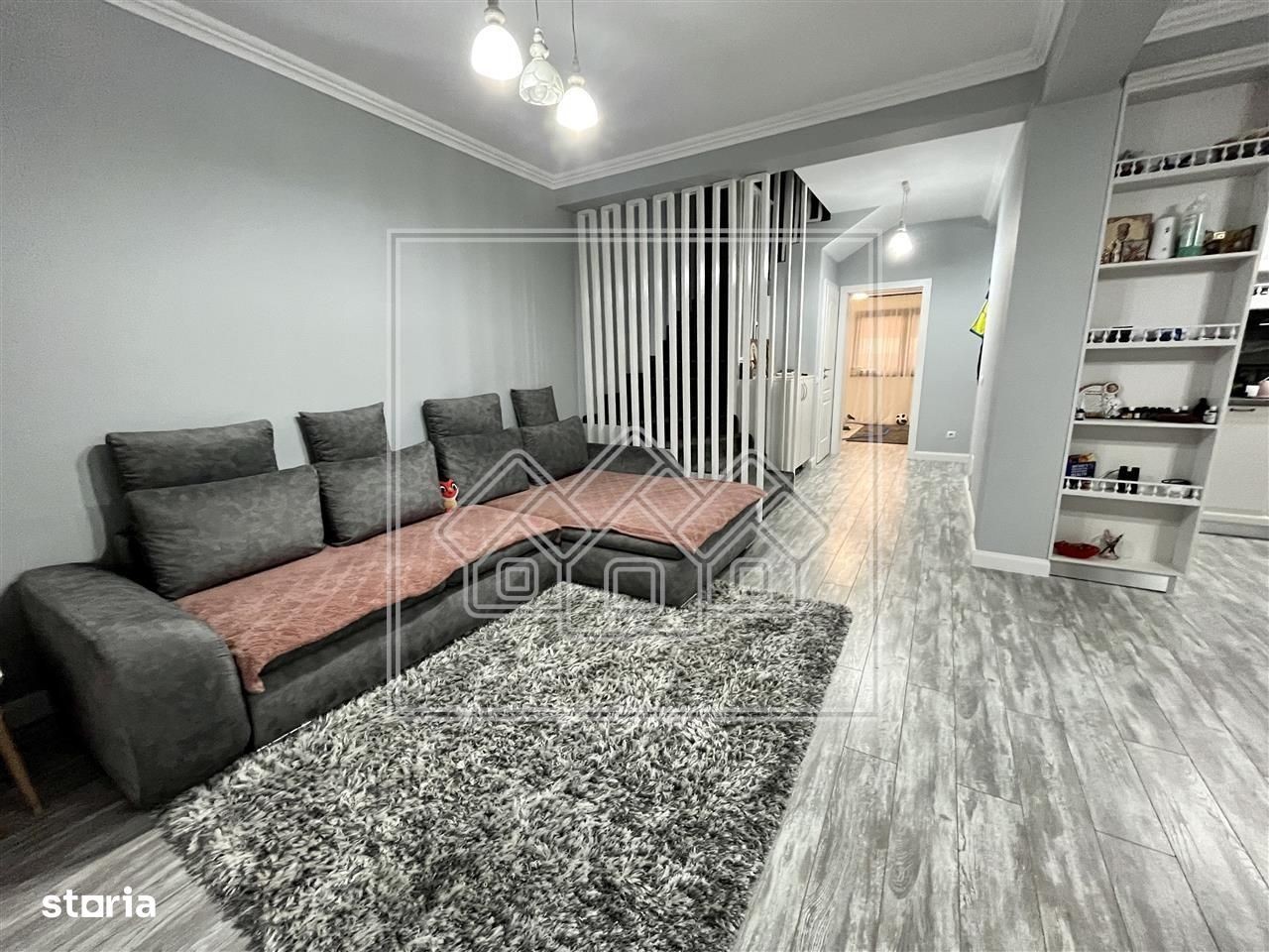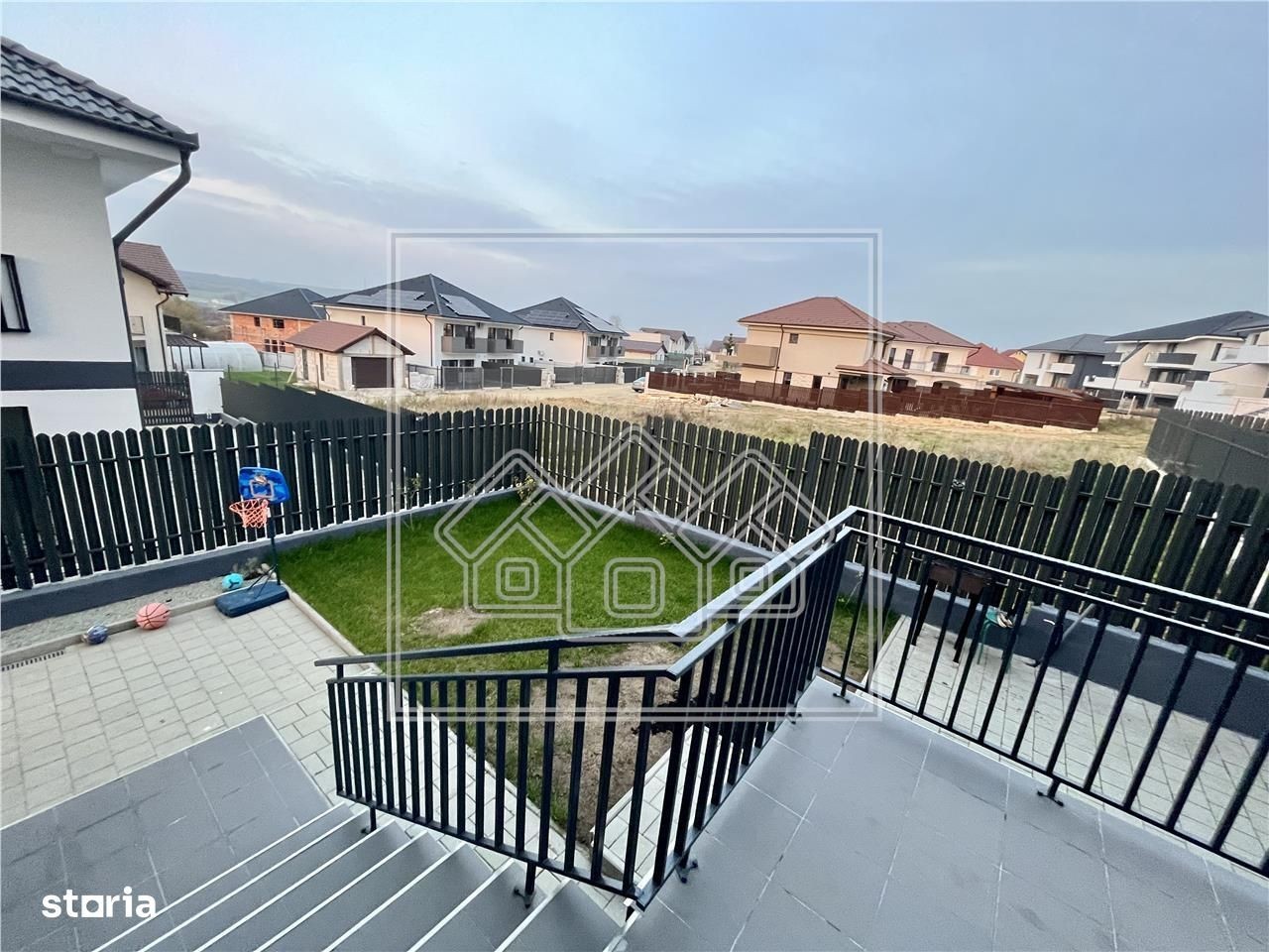 Agentia Imobiliara New Concept Living ofera o casa de vanzare in Sibiu - Cisnadie (tip duplex), cu 5 camere, situata in Cisnadie, reper Parcul Magura. Casa are o suprafata utila de 120 mp si suprafata teren de cca. 300 mp, curte libera de 200 mp. In plus, aceasta casa dispune de 2 balcoane de 4.17 mp, respectiv 14.83 mp (priveliste spre munti), o terasa cu suprafața de 12.07 mp, un podest de acces de 3.06 mp si de un spatiu de depozitare sub acesta. Regimul de inaltime al casei este: P+1E+Pod Parter (57.93 mp) format din hol, living cu bucatarie in suprafata totala de 33.50 mp, o camera de 11.04 mp, un grup sanitar de 4.83 mp si o debara. Accesul in terasa se poate face din living. Etaj (62.30 mp) compus din hol + scari interioare, 3 dormitoare (dormitor 1 in suprafata de 12.87 mp, prevazut cu balcon frantuzesc, dormitor 2 de 13.07 mp, cu acces in balconul de 4.17 mp si dormitor 3 in suprafata de 16.39 mp, cu acces in balconul de 14.83 mp), o baie prevazuta cu geam de aerisire, un dressing. Pod - pe toata suprafata casei, acces din hol. Acesta este finisat si izolat ( vata spuma 10 cm + parchet cu izolatie). Curtea este frumos amenajata, cu dale de beton si zona verde atat in fata casei, cat si in spate. Avantaje: - Complet mobilata si utilata - 5 camere - Incalzire in pardoseala in toata casa ( parter + etaj) - 200 mp curte libera, frumos amenajata si imprejmuita complet - Terasa si 2 balcoane - vedere catre munti - Multe spatii de depozitare + pod finisat si izolat - Scarile interioare imbracate cu mocheta si mana curenta din lemn - Plasa pentru insecte la toate geamurile si la usile de la balcoane si terasa - Constructie noua - 2021 - Strazi pavate si asfaltate Imobilul se va preda complet mobilat si utilat (masina de spalat vase, plita, cuptor, hota si frigider incorcopate in mobila, masina de spalat rufe). Aceste beneficiaza de acces auto in curte. Dotari: Incalzire in pardoseala in toata casa (parter + etaj), aer conditionat in dormitorul cel mare, plasa pentru insecte la toate geamuri si la usile de la balcoane si terasa. Aceasta casa de vanzare in Sibiu este intabulata si poate fi achizitionata imediat, atat cu resurse financiare proprii, cat si cu ajutorul unui credit bancar. Pretul imobilului ramane la fel indiferent de modul de plata ales de clientul cumparator. Casa este situata in Cisnadie, cu acces facil si catre Cisnadioara. In imediata apropiere sunt: Parcul Magura, Sala Polivalenta, patinoarul si strandul, plus Centrul Aria Cisnadie. ID intern: 17530