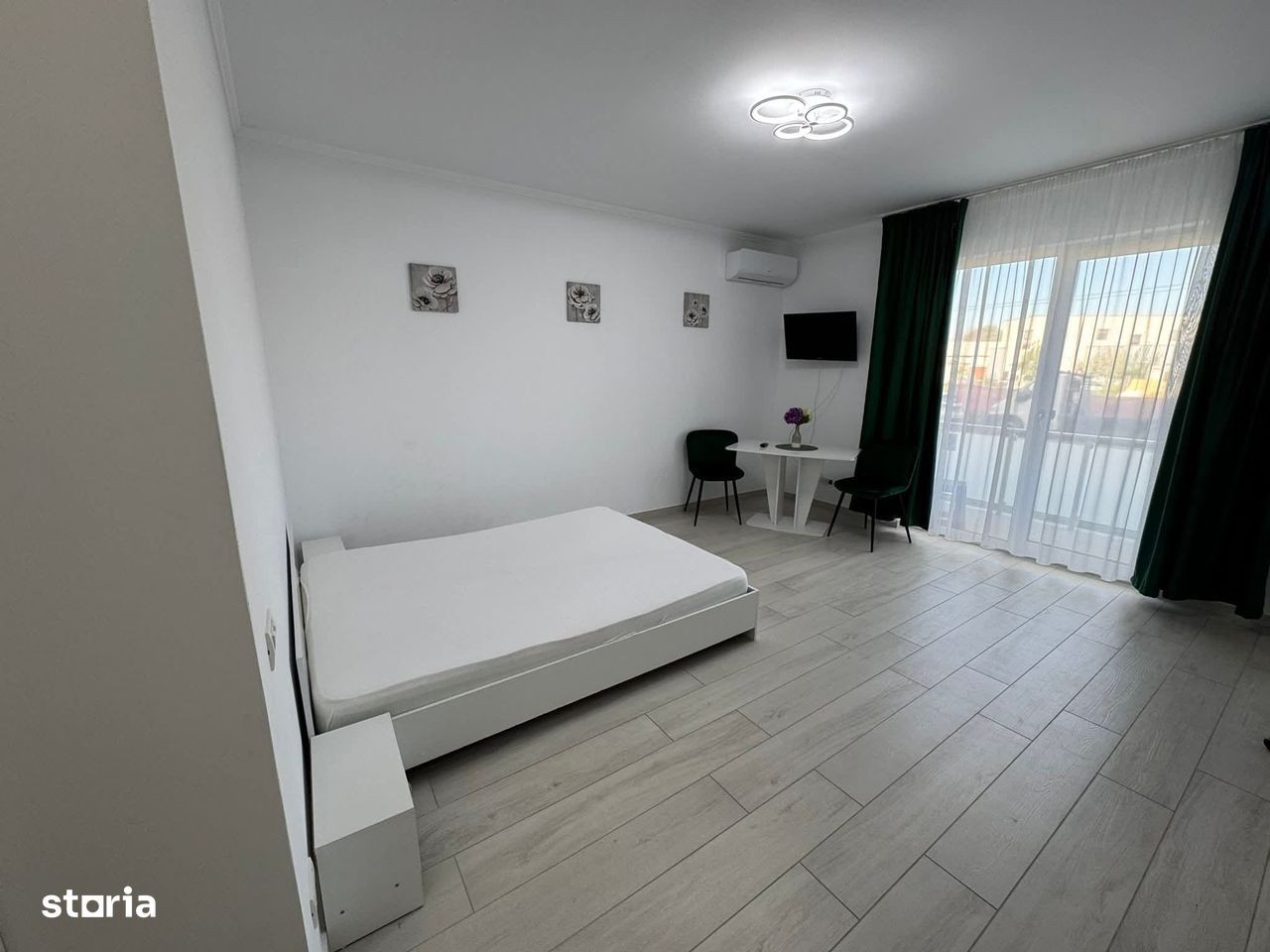 Va oferim spre inchiriere un Apartament cu 1 Camera situat in Giroc, Aleea cu Plopi, in spate la Profi. Apartamentul este de tip studio cu living& bucatarie open-space, baie spatioasa, hol, balcon si beneficiaza de 1 loc de parcare in CF.