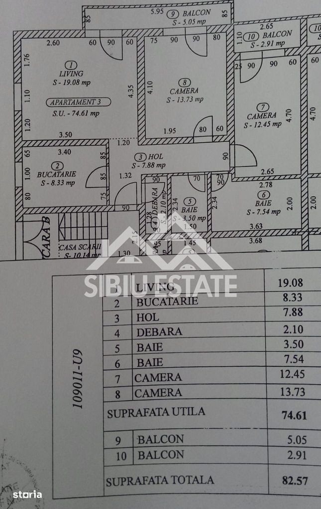 Apartament de vânzare - 3 camere, 2 băi, 2 balcoane Suprafață utilă: 74,6 mp Locație: Zona Cartierul Arhitecților Vă propunem spre vânzare un apartament spațios și bine compartimentat, situat într-un bloc modern, construit în 2016, în zona liniștită și foarte apreciată a Cartierului Arhitecților. Avantaje ale proprietății -Suprafață utilă: 74,6 mp -Bloc construcție 2016 -Apartament decomandat 2 băi -2 balcoane -Bucătărie închisă -Compartimentare practică și optimă Compartimentare -Hol -Bucătărie -Living -2 dormitoare -2 băi Apartamentul este luminos, bine organizat și se află într-o zonă liniștită, cu acces facil către oraș, stație de autobuz, magazine și alte puncte de interes. Sibiu Estate- Casa ta, povestea noastra