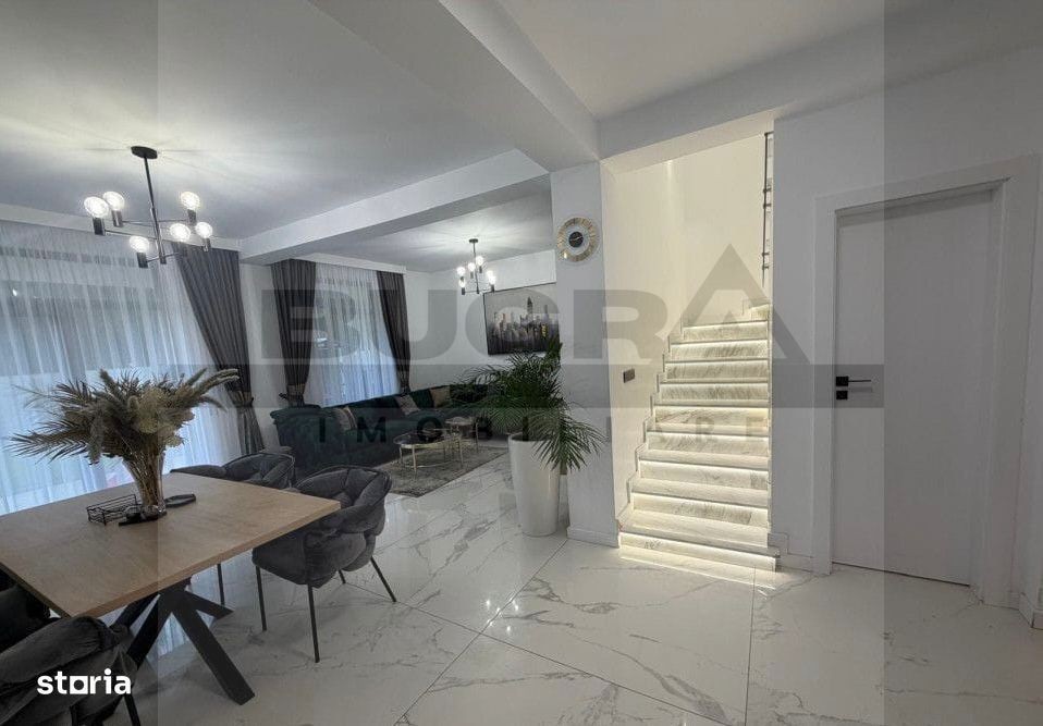 Bugra Imobiliare oferă spre închiriere un duplex exclusivist, conceput pentru cei care caută confort, rafinament și funcționalitate într-o zonă urbană activă. Cu o suprafață generoasă de 190 mp, această proprietate impresionează prin design modern, spații luminoase și o compartimentare excelentă. Caracteristici principale 4 camere spațioase, complet mobilate și utilate la standarde înalte Living modern cu bucătărie open-space la parter, plus hol și baie 3 dormitoare la etaj, dintre care unul dispune de baie proprie și dressing Două dormitoare cu acces la balcon, ideale pentru momentele de relaxare la aer curat Terasă de approx. 80 mp la nivelul superior (acoperiș), un adevărat refugiu urban Saună privată pe terasă + posibilitate de amenajare jacuzzi Curte de 200 mp, perfectă pentru activități în aer liber Aer condiționat & centrală pe gaz pentru confortul tău în orice sezon Construcție nouă, realizată cu materiale de calitate și finisaje premium Localizare Situată într-o zonă urbană dinamică, proprietatea îți oferă acces rapid la: magazine, restaurante, cafenele, parcuri, etc. mijloace de transport public aflate la doar câțiva pași Această casă este gândită pentru cei care își doresc un cămin modern, complet echipat, într-o zonă plină de energie și facilități. Terasa spectaculoasă cu saună și posibilitatea integrării unui jacuzzi adaugă un plus de exclusivitate rar întâlnit în ofertele de închiriere. Programează o vizionare și experimentează personal confortul și eleganța pe care acest duplex le oferă!