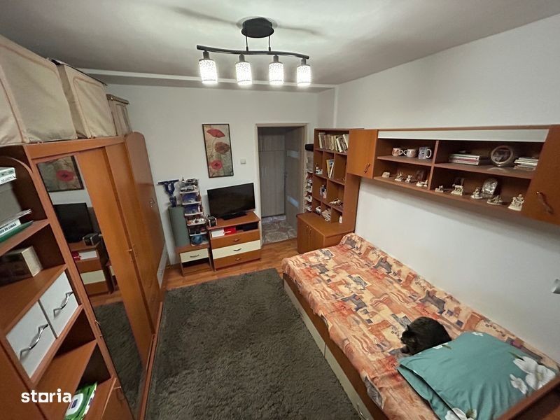 Vand apartament cu 3 camere in cartierul Tudor Vladimirescu, situat la etajul 4/4. Constructie 1982 cu suprafata utila 70mp, doua bai (cea cu cada are geam), doua balcoane inchise, camara si debara. Apartamentul e decomandat si e compus din antreu cu hol orizontal cu usa interioara, cu bucatarie, living si doua dormitoare amplasate vertical pe lungimea holului. Apartamentul e situat in zona Diamant, in imediata apropiere a parcului, avand statie de autobus (liniile 6, 19, 26 si 44) la parterul blocului. Locatia e foarte buna pentru familiile tinere in mod special, blocul aflandu-se in imediata apropiere a unor scoli, gradinite, hypermarketuri si supermarketuri, localuri, farmacii, dar si parcuri, precum si padurea Livezeni (15 minute pe jos prin padure pana la Platoul Cornesti). Pot fi efectuate lucrari de amenajare in interior. Apartamentul vine mobilat, dotat cu centrala termica, frigider, aragaz, televizoare etc. apartamentul e izolat termic (polistiren de 5cm in interior pe intreaga suprafata si izolare exterioara quasitotala). Acoperisul e de asemenea izolat si nu exista riscul de infiltratii. Pretul apartamentului este de 115.000€, cu posibilitate de eliberare de maximum 30 de zile. Mentionez ca sunt persoana fizica, nu lucrez cu agentii imobiliare. Accept numai oferte serioase pe whatsapp la