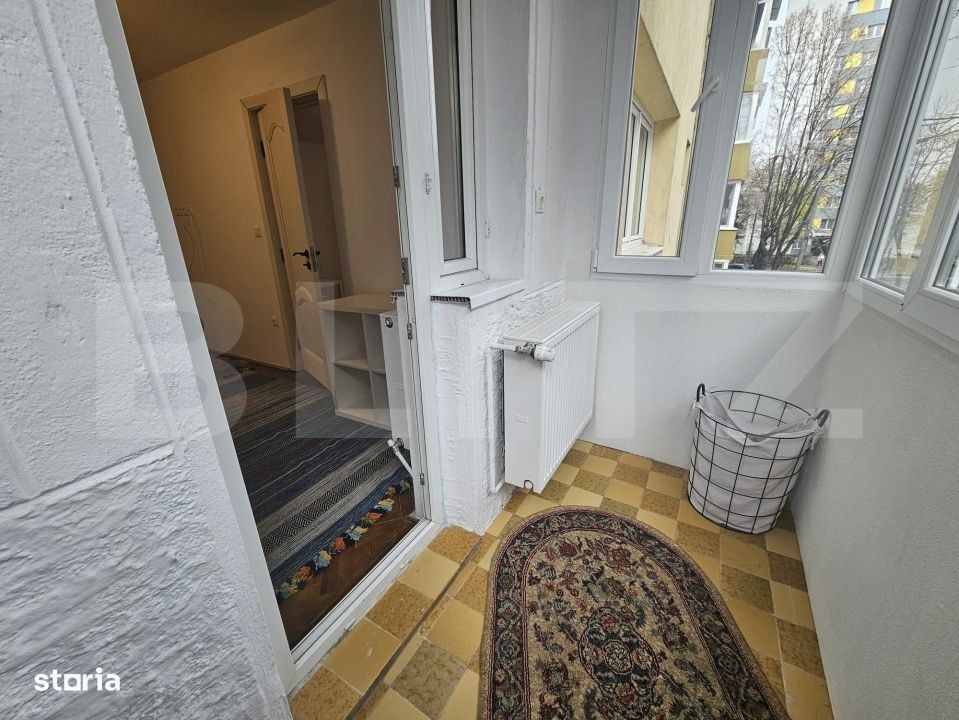 Blitz vă prezintă pentru închiriere un apartament cu 2 camere, situat la etajul 2 al unui bloc anvelopat, ideal pentru cei care caută confort și funcționalitate. Proprietatea dispune de un hol generos cu spații de depozitare, o bucătărie complet utilată, baie dotată atât cu cadă, cât și cu duș, un living luminos și primitor, precum și un dormitor cu balcon închis și încălzit. Încălzirea se realizează prin centrală proprie, prin calorifere, iar ambele camere sunt complet mobilate și utilate, gata pentru a vă muta imediat. Dacă sunteți o persoană care apreciați liniștea, un cămin primitor și apropierea de centrul orașului, vă așteptăm la vizionare.