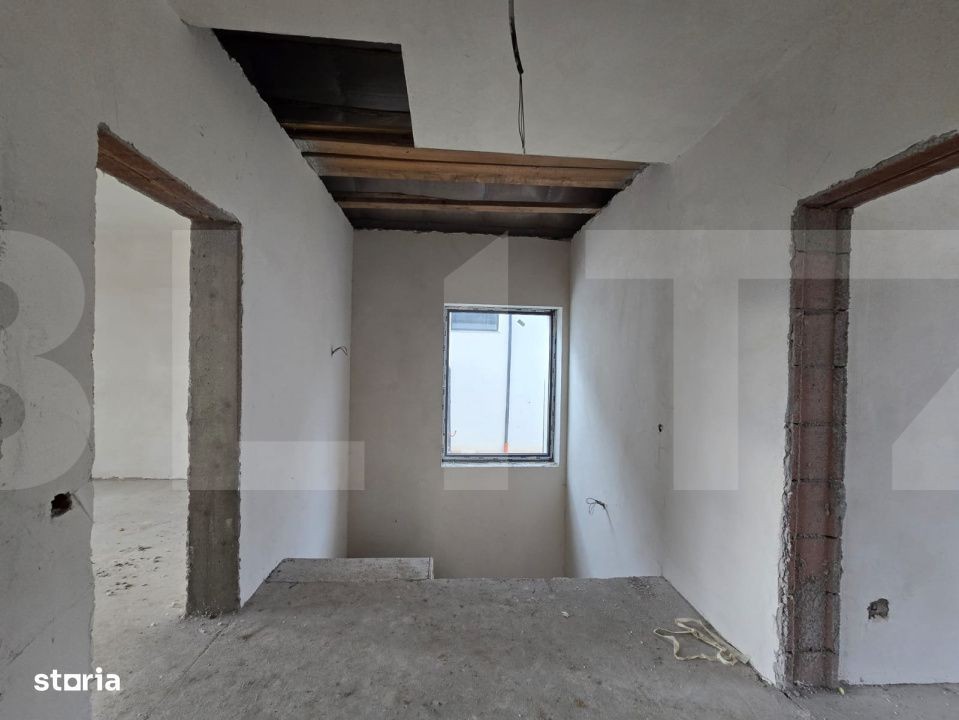 Blitz Imobiliare va ofera spre vânzare o casa alipita doar la intrare, cu priveliste spre padure, în localitatea Feleacu, situata pe un teren de 550mp. Această locuință spatioasa oferă confort, fiind ideală pentru o familie care caută un cămin primitor intr-o zona cu un aer mereu fresh. Caracteristici principale: -suprafață teren: 550 mp. -suprafata utila 150 mp. - parter : hol de intrare baie de servici si bucatarie cu living open space -etaj : 3 dormitoare dintre care unul matrimonial cu baie si dressing, o baie si un balcon cu iesire din doua camere - parterul dispune si de o terasa cu iesire din living Casa este alipita doar pe portiunea de intrare de alta unitate. Exista posibilitatea sa se amenajeze si podul care este cu placa de beton pentru o camera de 80mp in plus. Această proprietate este atent construită cu materiale de cea mai înaltă calitate, asigurând un standard ridicat de rezistenta și durabilitate. Locația în Feleacu oferă un mediu liniștit și sigur, ideal pentru familie, dar și acces facil către facilitățile urbane. Casa se preda la stadiul de semifinisat, cu centrala pe gaz, incalzire in pardoseala si fosa septica, Nu ratați această ocazie unică de a vă muta într-o casă care îmbină spatiul cu funcționalitatea, într-un cadru natural deosebit. Contactați-ne pentru mai multe detalii și pentru a programa o vizionare!