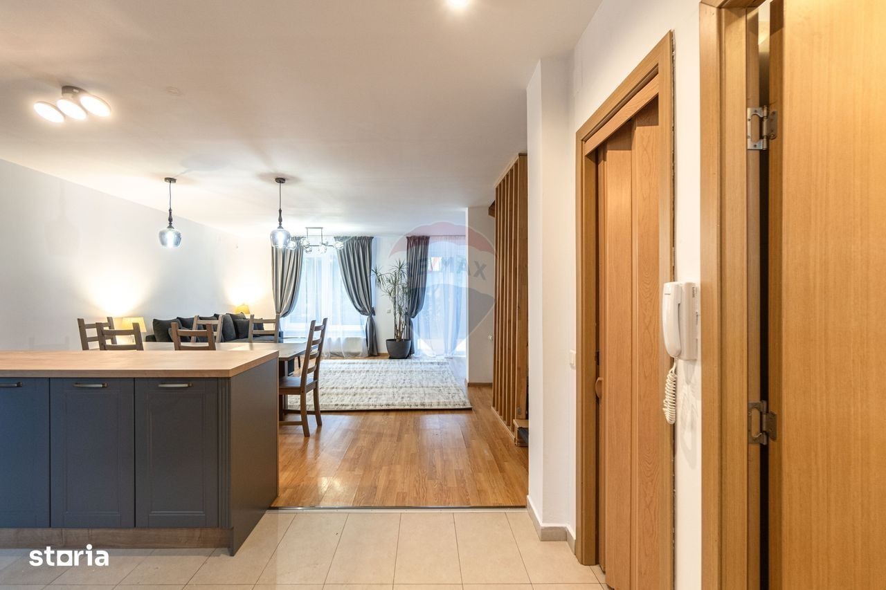 Apartament cu 6 camere de închiriat în zona Nouă - spațiu generos, modern și ideal pentru familie Vă propun spre închiriere un apartament extrem de spațios, tip casă/vilă, cu o suprafață utilă de aproximativ 180 mp, situat într-o zonă liniștită, aerisită și foarte apreciată a cartierului Noua. Proprietatea este disponibilă imediat și oferă toate condițiile pentru un trai confortabil, pe trei niveluri bine compartimentate. Compartimentare Parter Bucătărie open-space complet utilată Zonă de luat masa + living luminos Debara Baie de serviciu Acces direct către terasă și curtea comună, ideală pentru relaxare Etaj 1 2 dormitoare Dressing generos Baie spațioasă cu cadă Etaj 2 Dormitor matrimonial foarte mare Dressing Baie proprie cu duș Alte detalii importante Suprafață utilă: 180 mp Suprafață construită: 190 mp Imobil construit în 2010 Mobilat și utilat complet Finisaje ultrafine, stare impecabilă Loc de parcare inclus Curte comună Nu se acceptă animale de companie Condiții de închiriere Chirie: 900 euro + TVA / lună 1 lună garanție Contract minim 12 luni Comision chiriaș: 50% din valoarea unei luni de chirie + TVA Locație Proprietatea este amplasată într-una dintre cele mai atractive zone ale cartierului Noua, cu acces rapid la principalele puncte de interes: Lacul Noua, Parcul Noua și Aventura Park, Zoo Brașov, precum și numeroase restaurante și zone de promenadă. În apropiere se află școli, supermarketuri și stații RATBV, ceea ce oferă un nivel excelent de confort și conectivitate pentru orice tip de activitate.