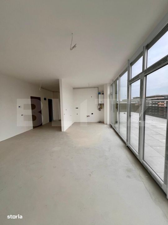 Blitz propune spre vanzare un apartament cu 3 camere, tip penthouse, situat la ultimul etaj al unui complex rezidential nou, in zona strazii Soporului. Apartamentul are o suprafata utila de 110.50 mp si o terasa impresionanta de 142,3 mp, care ofera vedere panoramica si un spatiu ideal pentru relaxare. Compartimentare: • living cu bucatarie open space • 2 dormitoare (unul cu dressing si baie proprie) • hol • baie separata Se preda cu peretii finisati in alb si sapa trasa, astfel ca viitorul proprietar isi poate personaliza locuinta exact dupa preferinte. Exista si posibilitatea de a oferi un proiect de design, la cerere. Zona este foarte bine dezvoltata: statie de autobuz la cateva minute, magazine, farmacii, iar in apropiere urmeaza sa fie amenajate terenuri de tenis si parcul de agrement Gheorgheni. Proprietatea beneficiaza de 2 locuri de parcare subterane, dintre care unul are o suprafata de 49 mp, oferind flexibilitate pentru depozitare sau alte utilizari. Un apartament spatios, luminos si potrivit pentru cine isi doreste un stil de viata modern si confortabil.