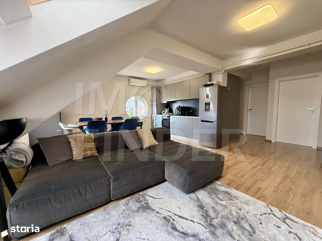 IMOFINDER va propune la vânzare FARA COMISION din partea cumparatorului, un apartament cochet, situat într-o zonă liniștită și apreciată din cartierul Bună Ziua. Locuința se află la mansardă, într-un imobil îngrijit, oferind intimitate, confort și un design modern, acest apartament de 73 mp îmbină perfect eleganța cu funcționalitatea. Este ideal pentru o familie tânără sau un cuplu care apreciază spațiile bine gândite și confortul de zi cu zi. Detalii apartament: • 2 dormitoare + living open-space • Zonă de dining cu lumină naturală • Bucătărie complet echipată • 2 băi moderne, cu design de revistă • Cameră de copil amenajată tematic Încălzire eficientă: pardoseală încălzită în băi pentru confort sporit, plus calorifere clasice în camere pentru reglaj ușor al temperaturii. Se vinde complet parțial mobilat și utilat, cu comision 0% pentru cumpărător.