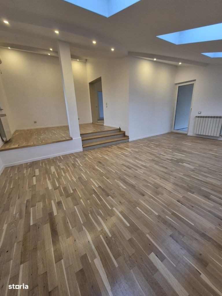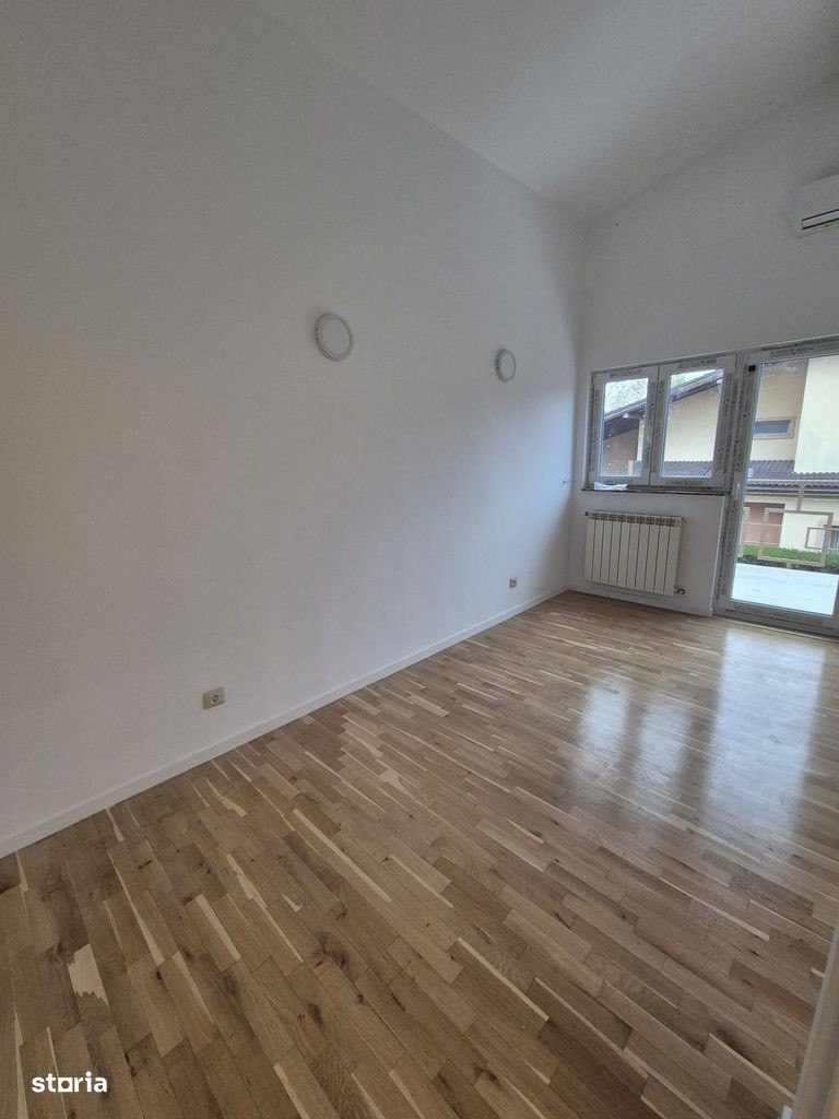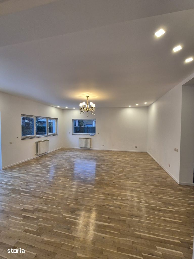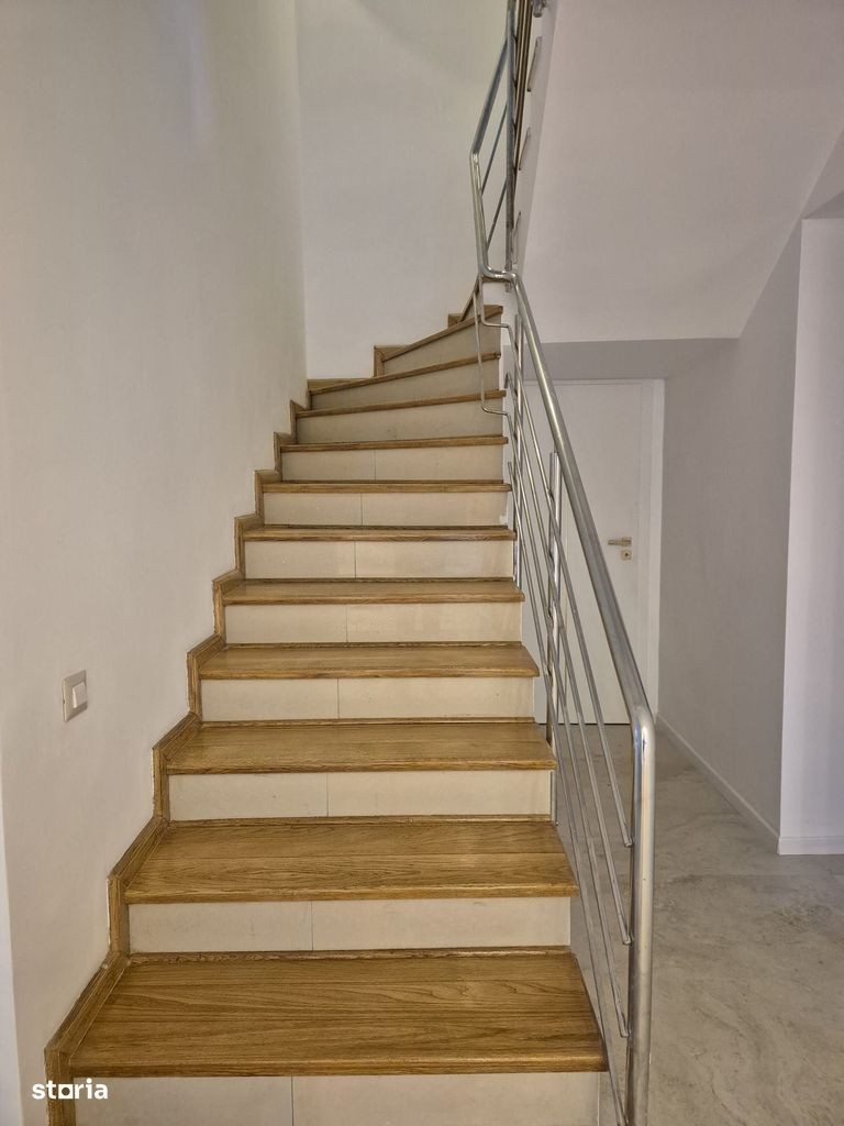 Vila renovata - PRIMA INCHIRIERE! Localizata in Pipera - Drumul Negru - complex privat. P+1E Va propunem spre inchiriere o vila deosebita, renovata in 2025, aflata la prima inchirere dupa renovare, cu finisaje de calitate superioara, tamplarie noua tripan, usi noi, curte privata (380mp), garaj pentru o masina cu acces direct in casa plus inca un loc de parcare in curte. Baile si bucataria sunt mobilate utilate. Tamplaria este de calitate inalta, Salamander, casa este izolata termic cu polistiren la exterior si construita din caramida poroterm pe structura din stalpi de beton, acoperita cu tigla metalica. La pardoseala s-a folosit parchet din lemn masiv, gresie si piatra naturala. Dispunerea este urmatoarea: Parter: living, dinning, bucatarie - mobilata si utilata, camera tehnica, camera pentru birou, terasa, grup sanitar si garaj. Etaj: 3 dormitoare si o camera spatioasa 2 terase si un balcon. Dormitorul matrimonial are dresing si baie proprie + balcon, celelalte 2 fiind deservite de o baie cu acces din hol. Terasele sunt placate cu travertin pe sistem flotant, permitand atat scurgerea apei cat si aerisirea terasei.