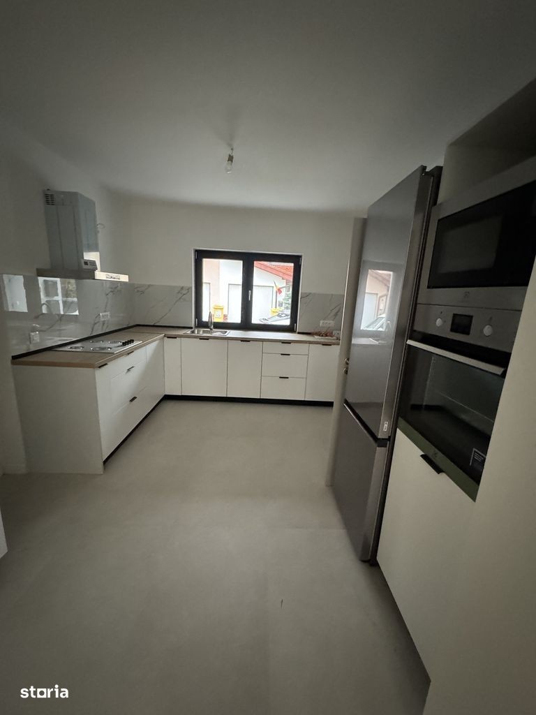 Vă prezentăm o casă spațioasă și modernă, cu o suprafață utilă de 120 mp, ideală atât pentru locuință, cât și pentru investiții. Proprietatea este inteligent compartimentată și oferă toate facilitățile necesare unui stil de viață confortabil. La parter, casa dispune de un living generos, luminos, perfect pentru momente de relaxare în familie, o bucătărie complet mobilată și utilată, pregătită pentru gătit în cele mai bune condiții, precum și o baie. Tot de aici se realizează și accesul direct către garajul interior, foarte practic în sezonul rece sau pentru siguranța suplimentară a mașinii. În continuarea parterului se află și o grădină ce urmează a fi amenajată în zilele următoare, oferind un spațiu excelent pentru relaxare în aer liber. La etaj, imobilul oferă trei camere spațioase, ideale pentru dormitoare sau birouri, precum și două băi moderne. Fiecare cameră beneficiază de dressinguri încorporate și numeroase spații de depozitare, asigurând un confort deosebit și o organizare eficientă. Casa este potrivită atât pentru locuința unei familii, cât și pentru amenajarea unui sediu social sau unei afaceri, datorită compartimentării eficiente și spațiilor generoase. În plus, zona este excelent deservită, având în proximitate școli și grădinițe, ceea ce o face o alegere ideală pentru familii și investiții pe termen lung. Apa este furnizată la nivel de complex, iar costurile sunt foarte reduse, ceea ce reprezintă un avantaj important pentru viitorii locatari. Vino la vizionare si convinge-te ca este cea mai buna alegere, atât pentru locuit cât si pentru investiții.