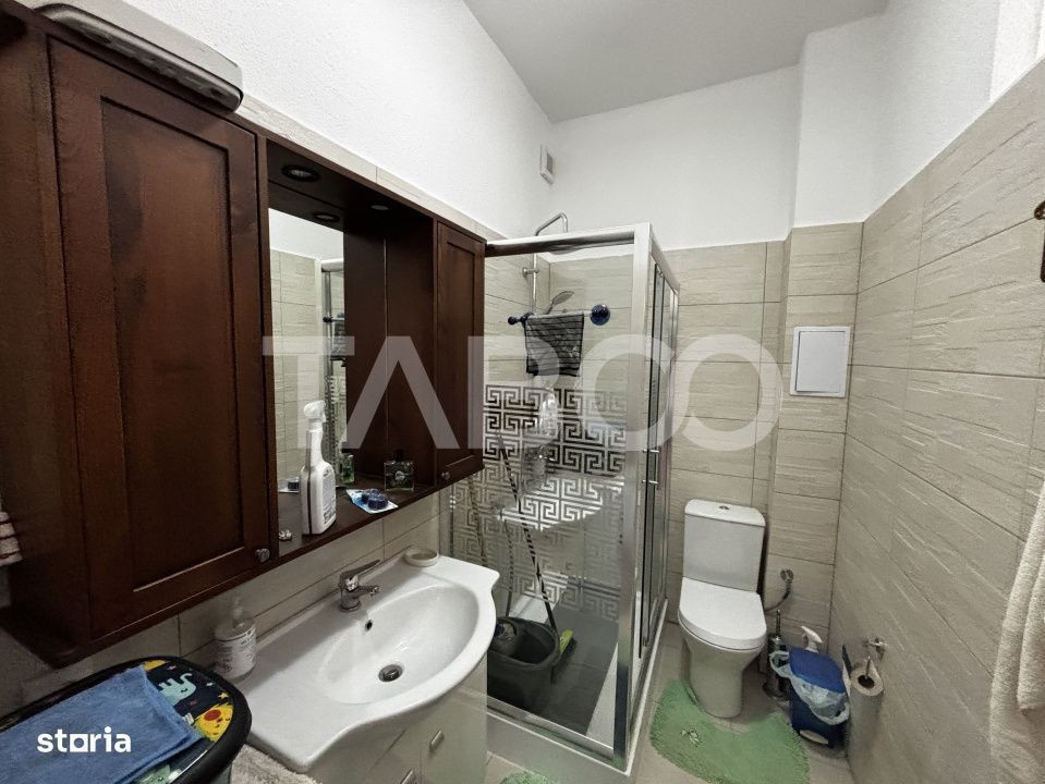 Apartament 2 camere de vanzare, semidecomandat, 41 mp, zona Doamna Stanca, Sibiu. Avantaje majore ale acestui apartament: • Un loc de parcare inclus in pret • Pretabil investitie sigura • Locatie ferita de aglomeratie, semidecomandat, situat in localitatea Sibiu, aflat la intr -un imobil tip bloc cu regim de inaltime Demisol+ Parter + 3 Etaje; structura beton. Suprafata utila de 41 mp + balcon de 2 mp. • Hol; • Bucatarie deschisa • Baie; • Living cu acces pe balcon; • Dormitor cu acces pe balcon; • Usa intrare: metal; • Usi interioare: celulare; • Tamplarie ferestre: pvc, termopan; • Pereti: vopsea lavabila, faianta; • Podele: parchet, gresie. • Bucatarie: mobilata, utilata; • Mobilat: complet; • Utilitati: curent electric, apa, canalizare, gaz, catv, fibra optica; • Izolatii: exterior, bloc izolat termic; • Contorizare: apometre, contor gaz, contor curent electric; • Caracteristici bloc: interfon, telecomanda poarta acces auto. Apartamentul se vinde mobilat si utilat cu: plita pe gaz cuptor, hota, masina de spalat rufe, frigider cu congelator Incalzirea se realizeaza prin centrala proprie, incalzire pardoseala si dispune de sistem de climatizare (A.C.). Se accepta ca si modalitate de plata surse proprii sau credit bancar. Pret: 84.500€ Sună-ne acum și află detalii despre această proprietate de vanzare din Sibiu, dar și despre alte proprietăți potrivite pentru tine.