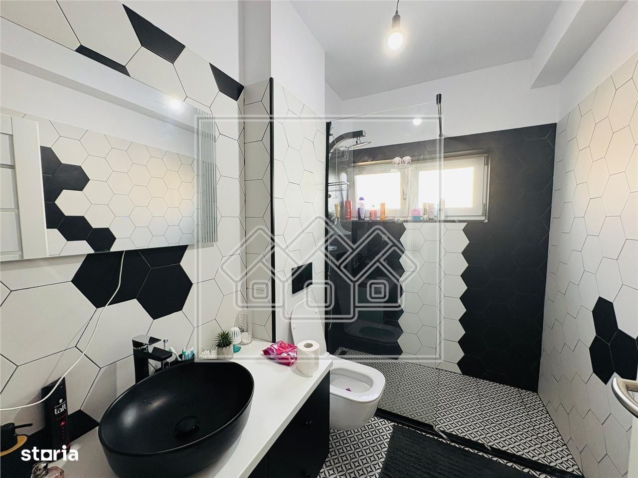 Apartament 2 camere cu terasa 9.42 mp - mobilat si utilat - Zona de Vest, DaVinci Homes De vanzare un apartament modern si luminos, situat intr-un cartier nou, cu strazi pavate, aer curat si multe spatii verzi. Locuinta se afla intr-o vila eleganta, cu putini vecini, oferind intimitate si un stil de viata confortabil. Detalii apartament: - Apartament intabulat - disponibil imediat - Suprafata utila: 52.89 mp - Compartimentare decomandata - Baie cu geam - Terasa: 9.42 mp - Incalzire in pardoseala si termostate in fiecare camera - Centrala termica in condensatie - Tamplarie PVC cu 5 camere si 3 foi de sticla - Loc de parcare inclus Predare: - Se vinde complet mobilat si utilat, la pretul afisat Avantaje: - Orientare sudica - Cartier cu 45% spatii verzi - Ansamblu cu 4 intrari si iesiri - Loc de parcare inclus Locatie: - Zona de Vest - Ansamblul DaVinci Homes - 4 minute pana in Zona Industriala Vest - 4 minute pana la Metro - 15 minute pana in centrul istoric al Sibiului ID intern: 23002 Pentru mai multe detalii sau programarea unei vizionari, ma poti contacta telefonic.