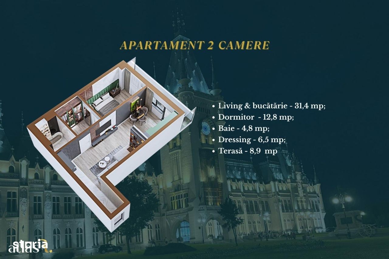 Functional, elegant, in inima verde a orasului. Un apartament compact, dar extrem de bine gandit pentru cei care cauta eficienta. Spatiul este bine impartit, cu zone distincte pentru dormit, relaxare, gatit si luat masa, toate intr-un cadru aerisit si modern. Living si bucatarie open-space, 31,4 mp - pentru un stil de viata dinamic, dar organizat; Dormitor de 12,8 mp, cu dressing de 6,5 mp, Baie de 4,8 mp, finisaje moderne și functionale. Balcon de 8,9 mp, locul perfect pentru o cafea dimineata sau o lectura de seara. Complexul iti ofera toate avantajele unui cartier inchis, cu 20.000 mp de spațiu verde amenajat ca o gradina interioara: alei pietonale, locuri de joaca, zone de relaxare și vegetatie matura. E locul in care poti iesi la o plimbare fara sa parasesti complexul. Intre efervescenta orasului si linistea pe care o cauti, Copou Garden Residence reuseste sa le bifeze pe amandoua. Zona: Copou - una dintre cele mai cautate si apreciate zone rezidentiale din Iasi, recunoscuta pentru liniste, siguranta si calitatea vietii. Daca esti in cautarea unei locuinte smart, bine amplasate si confortabile, fie ca prima investitie, fie ca spatiu personal, acest apartament este o alegere inspirata. Pretul difera in functie de metoda de plata aleasa si de avansul oferit. Daca simti ca acest loc ar putea deveni acasa pentru tine sau vrei sa afli mai multe detalii despre aceasta proprietate, ne poti contacta. Suntem aici sa te ajutam sa iei cea mai buna decizie! Atlas Realty | Imobiliare Partenerii tăi în noi începuturi!