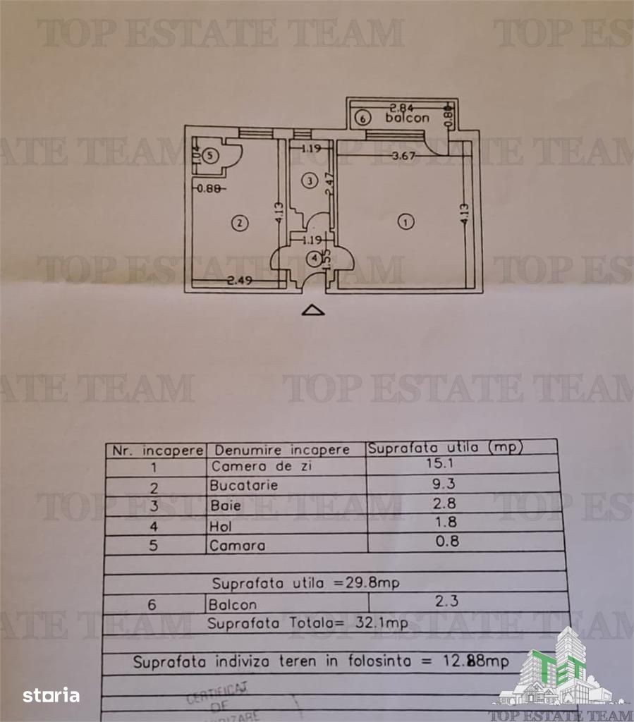 Excelenta prin experienta! Apartament 1 camera pozitionat pe b-dul General Eremia Grigorescu - b-dul Dorobantilor. Compartimentarea este de tip decomandat. Apartamentul este situat la etajul 2. Imobilul in care este amplasat apartamentul are 2 etaje. Suprafata utila = 30 mp, suprafata totala = 32 mp. Apartamentul are 1 living spatios, 1 bucatarie, 1 baie, hol intrare, balcon inchis. Utilitati: curent, apa, gaz, calorifere, centrala proprie, canalizare. Finisaj exterior - izolatie termica cu polistiren expandat de 10 cm grosime si tencuiala decorativa. Finisaj interior - pardoseli cu gresie, pereti + tavane cu faianta si vopsea lavabila, ferestre din tamplarie PVC cu geam termopan, usa intrare din metal, usi interioare din lemn. Apartamentul se vinde nemobilat. Blocul a fost construit in anul 1977 si apartamentul a fost renovat in anul 2025.