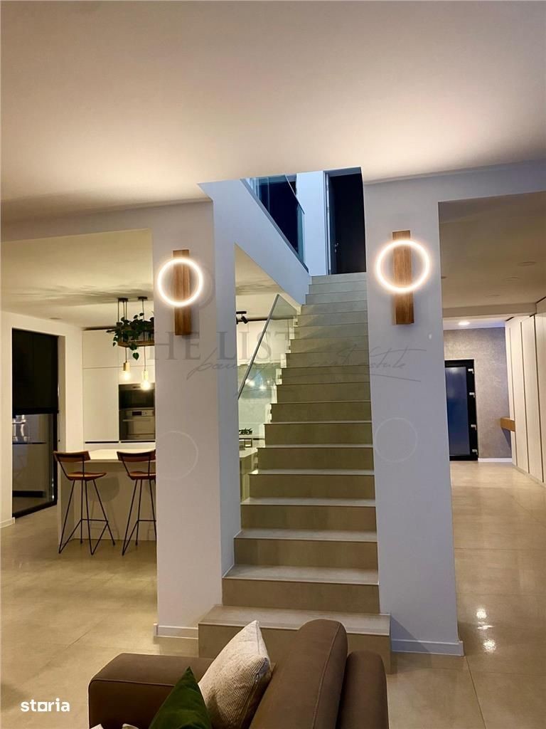THE List Estates prezinta: Vila Individuala Premium - Paradisul Verde, Corbeanca | 4 Camere | Gradina Privata 434 mp | Design Scandinav Va propunem spre vanzare o vila spectaculoasa, situata in complexul rezidential exclusivist Paradisul Verde - una dintre cele mai ravnite zone din nordul Bucurestiului. Detalii esentiale: Suprafata utila: 191 mp | Suprafata construita: 276 mp Teren: 572 mp | Gradina privata: 434 mp P+1 | 4 camere | 4 bai | 1 terasa (32 mp) + 2 balcoane (24 mp) Constructie 2021 | Mobilata si utilata complet Arhitectura scandinava, finisaje premium, lumina naturala abundenta Compartimentare inteligenta: Parter: living spatios, zona de dining, bucatarie open-space complet echipata, baie, terasa de 32 mp Etaj: dormitor matrimonial cu dressing si baie proprie, 2 dormitoare secundare cu balcoane, baie comuna, dressing suplimentar, terasa generoasa Dotari premium: Incalzire in pardoseala cu doua centrale Viessmann Ferestre VEKA cu geam tripan Aer conditionat la etaj, sistem audio incastrat, videointerfon Mobilier de designer de la Kave Home, Floss, Zuiver, Villeroy&Boch Gradina amenajata cu bucatarie de vara, deck din lemn, semineu exterior, sistem de irigare automat Facilitati ale complexului: Acces securizat 24 7, club sportiv cu piscine interioare si exterioare, sala de fitness si spa Scoala si gradinita privata, locuri de joaca, terenuri de sport multiple Programeaza o vizionare cu THE List Estates si descopera eleganta si linistea unei locuinte de exceptie!
