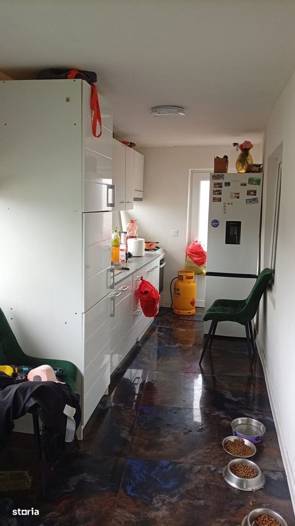 UCM Imobiliare va propune spre vanzare o casa,renovata total,situata in satul Curmatura,comuna Giurgita,avand o suprafata utila de 110mp,compusa din doua corpuri de cladire,situata pe un teren de cca. 1250mp,casa fiind compartimentata astfel: -camera de 40mp care se voia transforma in magazin,posibilitatea unui living foarte mare.