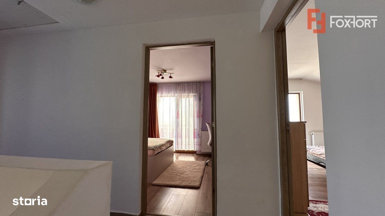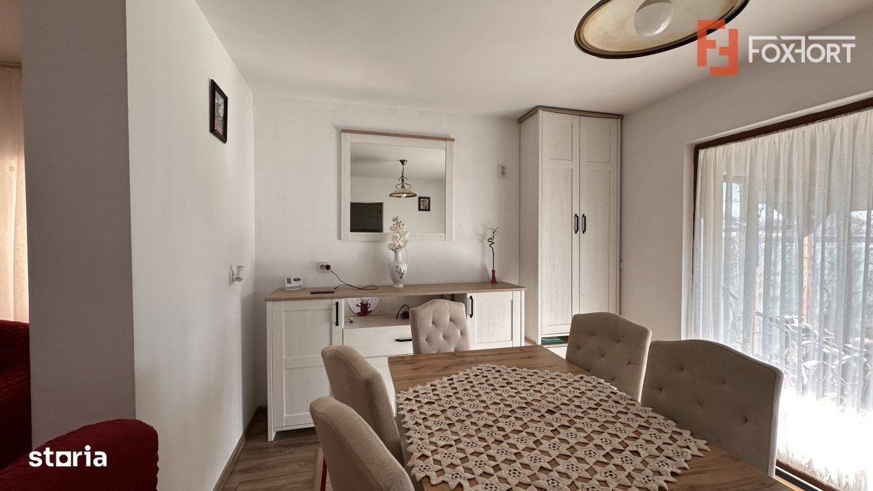 Duplex cu 4 camere de vanzare in localitatea Mosnita Noua. FOXFORT propune spre vanzare casa tip duplex, cu un regim de inaltime Parter + Mansarda + Pod, situata in Mosnita Noua, avand un numar de 4 camere, cu o suprafata utila de 131 mp si teren 321 mp. Anul constructiei este 2018, structura beton, material zidarie caramida. Imobilul dispune de urmatoarele utilitati: curent electric, apa, gaz, fosa septica, catv, fibra optica. Compartimentarea este dispusa dupa cum urmeaza: - Parter: hol, living, baie, bucatarie cu debara, terasa; - Mansarda: hol, 3 dormitoare din care unul cu dressing si baie proprie, baie, balcon; - Pod depozitare. Finisajele interioare sunt moderne: - Usa intrare: pvc; - Usi interioare: celulare; - Tamplarie ferestre: pvc; - Podele: parchet, gresie. Casa se vinde mobilata si utilata: plita, cuptor, hota, masina de spalat rufe, frigider cu congelator. Imobilul dispune de centrala proprie cu incalzire prin calorifere, 2 locuri de parcare in fata casei, garaj 15 mp, curte amenajata cu gazon, pomi fructiferi, pompa de gradina. Pretul este de 219.990€ - COMISION 0%. Se accepta ca si modalitate de plata surse proprii sau credit bancar. ID intern: V7855