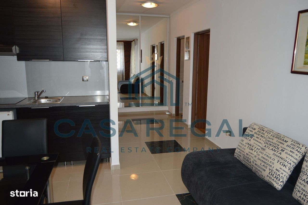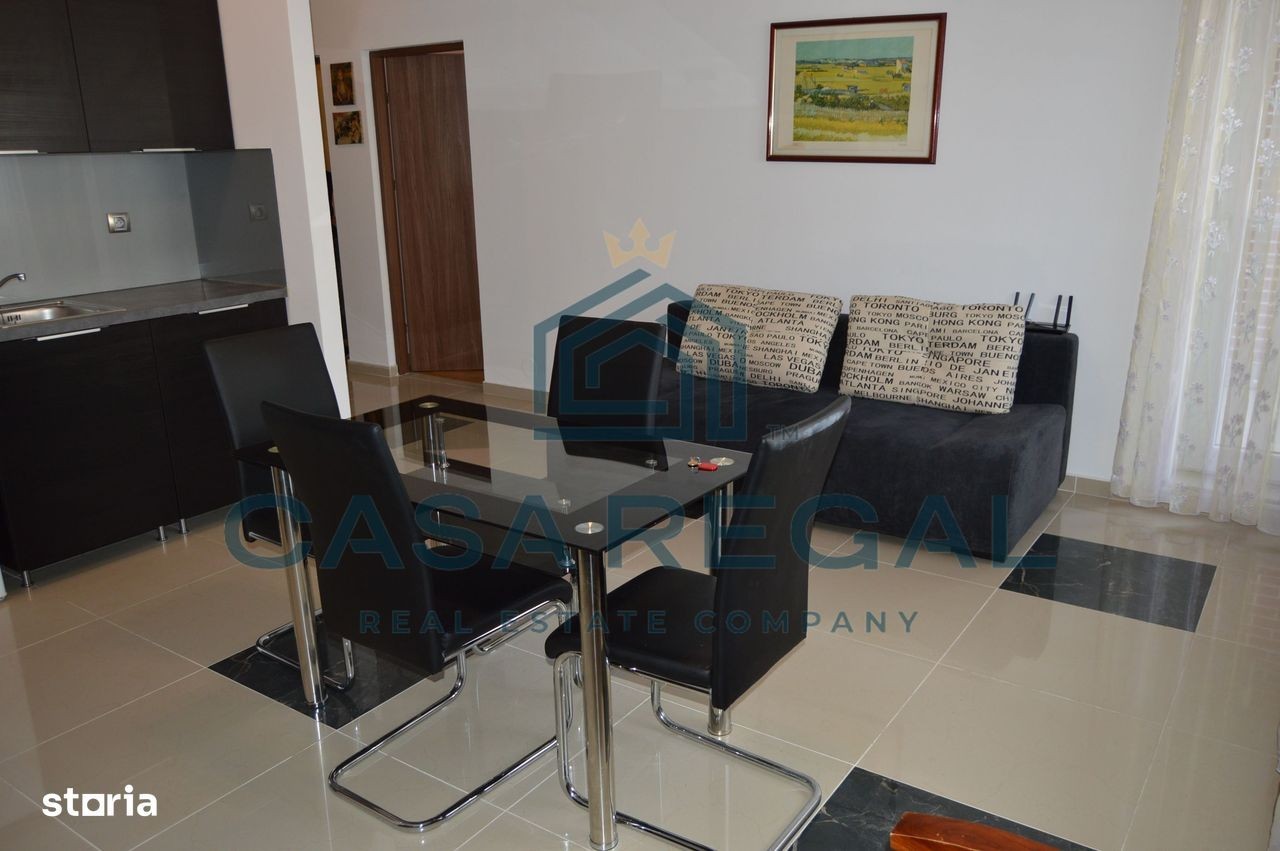 Apartament 2 camere, situat la etajul 2, in Cartierul Luceafarul. Imobilul, cu o suprafata utila de 45 mp + balcon 4,9 mp, este compus din: acces intrare unit cu camera de zi si bucataria, dormitor, baie, debara si balcon. Apartamentul dispune de: parchet, gresie si faianta moderne, usa intrare de inalta siguranta, sistem de aer conditionat, etc. Se inchiriaza utilat si mobilat, cu loc de parcare subteran, pentru o perioada de minim 12 luni. La acest apartament exista si varianta inchirierii fara locul de parcare, la pretul de 400 euro. Disponibil din 01 octombrie.