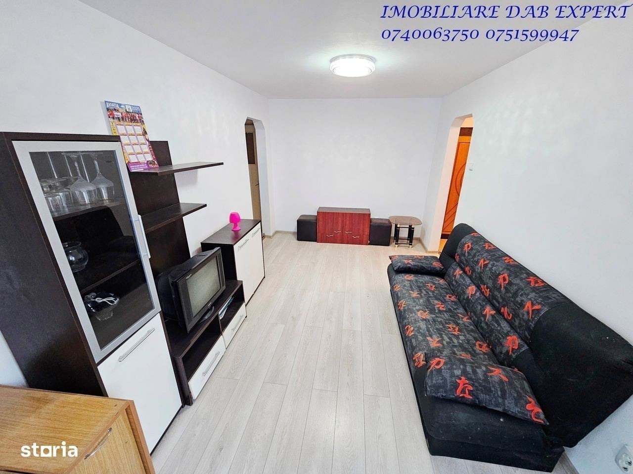 Închiriem un apartament cu 2 camere situat la etajul 1 al unui bloc cu 4 etaje. Are o suprafață de 50 mp și este partial mobilat. Printre dotări se numără: mașină de spălat, aragaz si cuptor. Apartamentul nu dispune de frigider si televizor, iar sufrageria este nemobilata.