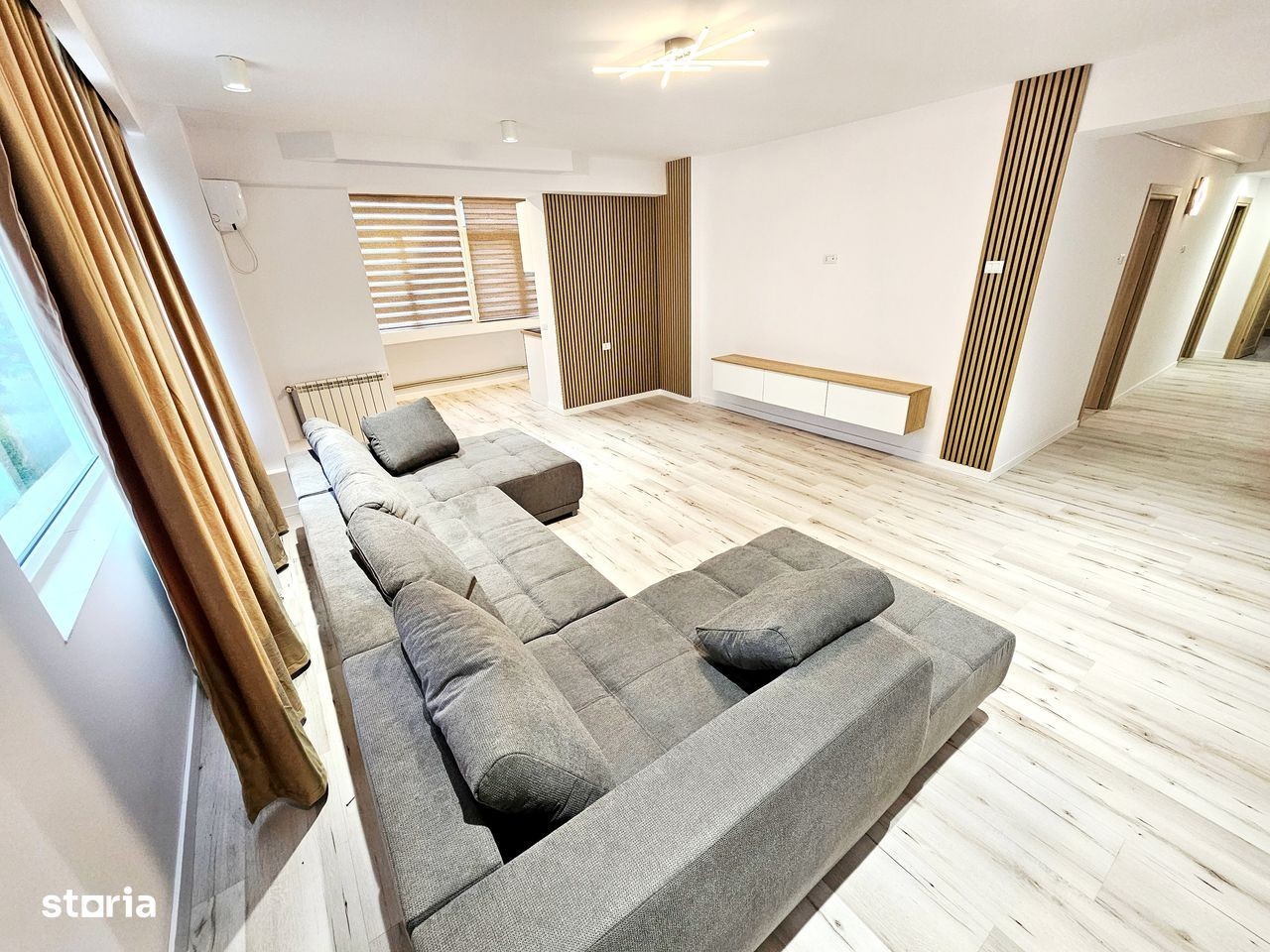 Acest apartament de 118 mp se află la parterul unui bloc cu șapte etaje intr-un bloc exclusivist, are curte interioara si acces cu telecomanda. Dispune de tâmplărie din plastic și pardoseli din laminat și lemn. Este complet echipat cu mobilier, aparat de spălat, frigider, plită, cuptor și TV. Beneficiază de balcon, cameră de usable, garaj și grădină.