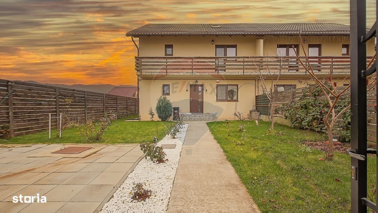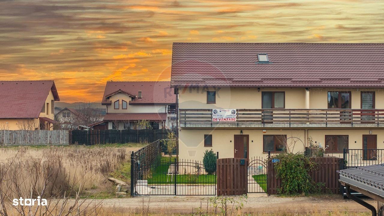 Vă propunem spre vânzare, în sistem de reprezentare exclusivă și cu 0% comision pentru cumpărător, un duplex modern și extrem de funcțional, situat într-o zonă liniștită din Tărlungeni, mai exact in cartier Izvor, pe strada Hărmanului nr. 6B, la doar câțiva pași de drumul principal și de magazinul La Doi Pași. Construit în anul 2021, imobilul are regim de înălțime P + 1E + Pod locuibil, o suprafață utilă de 126 mp la care se adaugă peste 50 mp utili în pod, și este amplasat pe un teren generos de 330 mp, atent valorificat. Compartimentare: Parter: Parterul vă întâmpină cu un hol amplu, o baie modernă cu cabină de duș și aerisire naturală, precum și o cameră versatilă, amenajată în prezent ca birou, dar ușor transformabilă în dormitor. Zona de zi este compusă din living open-space și bucătărie complet mobilată și utilată, un spațiu luminos și primitor, ideal pentru relaxare și socializare. Din living se realizează accesul direct către curtea din spate, ceea ce creează o conexiune fluidă între interior și exterior. Etaj: Etajul include trei dormitoare luminoase, fiecare cu acces propriu la balcon. Două dintre ele împart un balcon de dimensiuni generoase, în timp ce al treilea beneficiază de un balcon privat. Tot aici se află și o baie spațioasă, echipată cu cabină de duș, cadă și aerisire naturală. Pod (locuibil): Accesul către pod este realizat printr-o scară interioară. Podul este amenajat și locuibil, având înălțimea necesară pentru a fi mansardat complet. Spațiul este ideal pentru o zonă de joacă, birou, hobby room sau chiar un dormitor suplimentar, oferind lumină naturală și un ambient aerisit. Curtea și exteriorul: Curtea din față permite parcarea a două autovehicule și este frumos amenajată. Curtea din spate oferă intimitate și vedere liberă, fiind completată de o magazie pentru depozitare. Dotări și beneficii Imobilul se vinde complet mobilat și utilat, incluzând: mașină de spălat rufe, uscător individual, mașină de spălat vase, plită electrică, cuptor electric, cuptor cu microunde și frigider. -Finisaje moderne și bine întreținute -Pod locuibil, pregătit pentru mansardare -Cameră la parter ce poate servi ca dormitor -Sisteme de alarmă și supraveghere video integrate -Utilități: gaz, curent, apă, fosă septică -Locație liniștită, la doar 20 min cu mașina de Brașov -În apropiere: magazine, pizzerie, stație de autobuz Condiții de tranzacționare: -0% comision pentru cumpărător -Se acceptă plata cash -Se acceptă plata prin credit bancar -Perfectare rapidă a actelor Dacă această proprietate corespunde criteriilor dumneavoastră, vă stau cu drag la dispoziție pentru informații suplimentare și programarea unei vizionări. Andrei Mocanu