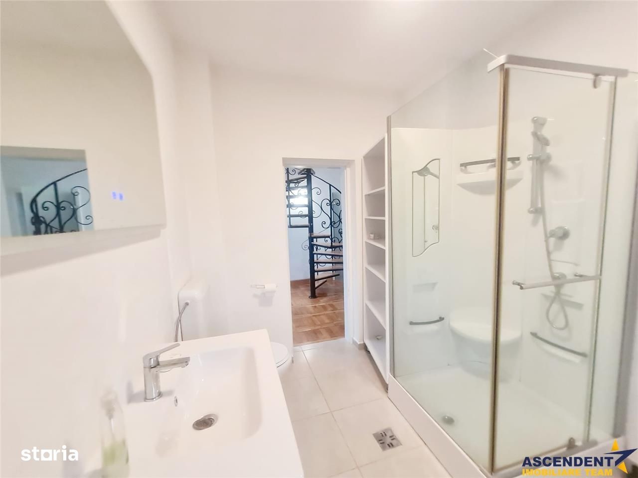 Comision chirias: 50% + TVA, din contravaloarea unei chirii lunare. ASCENDENT IMOBILIARE Este onorata sa va propuna spre inchiriere o casa eleganta, complet utilata si mobilata, situata in zona centrala a orasului intr-un cartier linistt de case. Proprietatea este amenajata in stil vintage, este primitoare si luminoasa, dar si cu note moderne pe alocuri. Pe langa suprafata de 130 de metri utili, rezidenta dispune de o curte ampla care permite parcarea a 4 masini, balcon si terasa deschisa, oferind un spatiu care poate fi organizat atat pentru relaxare, cat si pentru o masa în familie sau alaturi de invitati. Configuratia casei: Parter inalt: hol mare la intrare living generos cu iesire pe terasa de 12 mp bucatarie cu spatiu amenajat ptr depozitare baie moderna cu cabina de dus Etaj: dormitor matrimonial dormitor secundar copii baie moderna cu cabina de dus Mansarda: spatiu mare si luminos amenajat pentru relaxare lectura home working Nu in ultimul rand, rezidenta este unica datorita spatiului luminos de relaxare sau de home working amenajat la mansarda. Va doresc o zi cu soare in suflet! Consilier specializat pe oferta: doamna Gilda Georgescu Telefon WhatsApp: