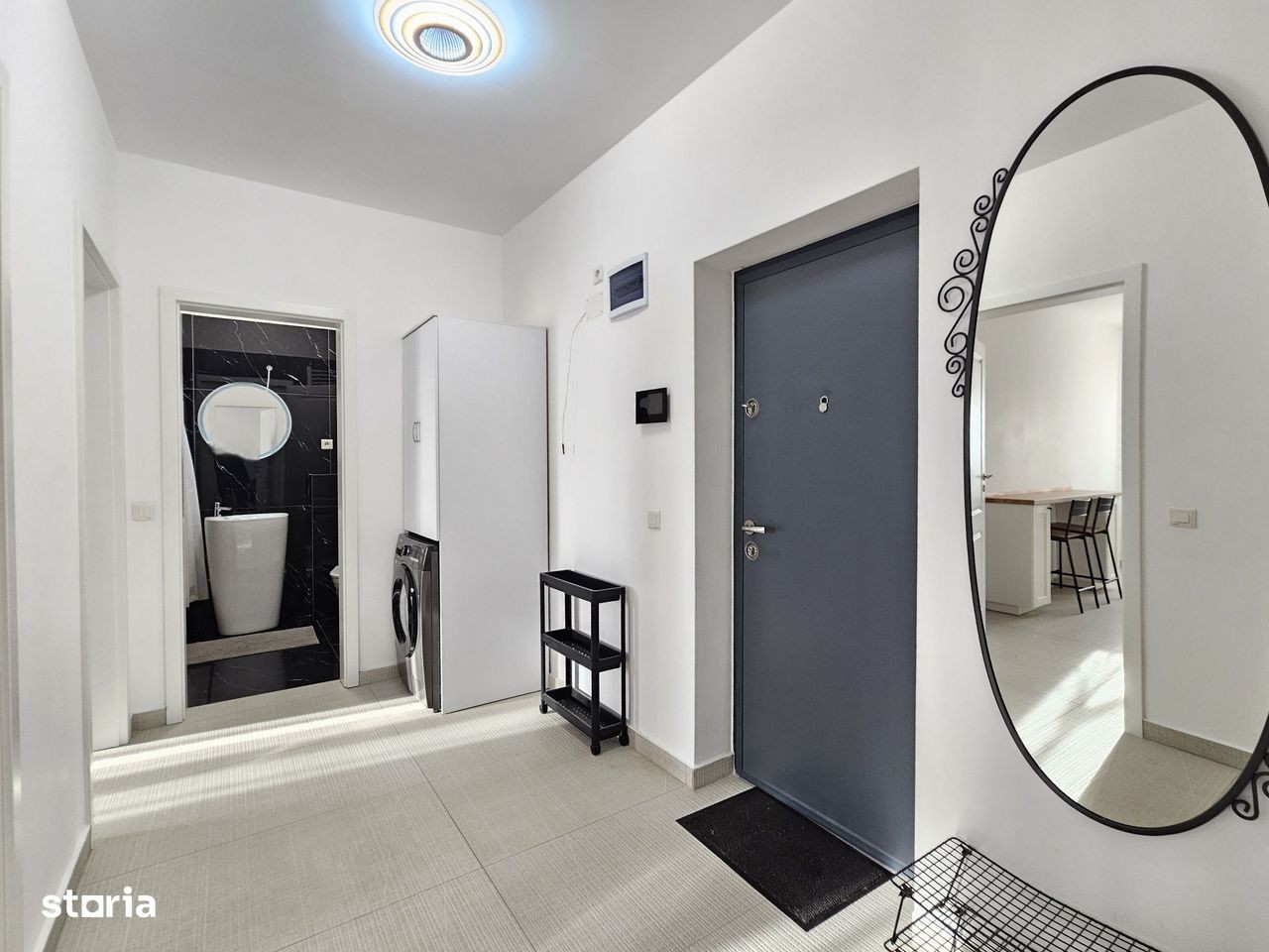 Sky Garden Residence - Apartament Premium cu Parcare Subterană | Disponibil Imediat C&C Estate Experts vă prezintă spre închiriere un apartament modern, situat în ansamblul rezidențial Sky Garden Residence, pe Șoseaua Olteniței, la intrarea în Popești-Leordeni. Caracteristici principale 2 camere decomandate Suprafață utilă: 55 mp Etaj 9/10 - vedere liberă către zona de case An construcție: 2023 Orientare Sud - luminos pe tot parcursul zilei Loc de parcare subteran inclus Confort: Lux Apartamentul se remarcă printr-un design contemporan, amenajat cu mobilier premium și finisaje atent alese. Fiecare spațiu a fost optimizat pentru a oferi funcționalitate, confort și estetică. Bucătărie închisă - complet mobilată și utilată cu electrocasnice moderne (aragaz, hotă, combină frigorifică, mașină de spălat rufe, mașină de spălat vase). Living luminos cu acces către balconul generos, ideal pentru relaxare. Dormitor confortabil, prevăzut cu mobilier de calitate și spații amplu de depozitare. Baie elegantă, dotată complet. Parcare subterană inclusă în preț - un avantaj major în zonă. Fiind amplasat pe partea din spate a blocului, apartamentul este ferit de traficul urban, oferind liniște și intimitate, alături de o priveliște neobstrucționată. Localizare și puncte de interes Stații STB la doar 300-400 m Stația de metrou Apărătorii Patriei la aprox. 20 de minute de mers pe jos. Acces facil către: Popești-Leordeni Piața Sudului Aparatorii Patriei Vitan-Bârzești Parcul Natural Văcărești Zona beneficiază de străzi asfaltate, iluminat, magazine, școli, grădinițe și spații de recreere în apropiere. Dotări și facilități în imobil Lift modern Interfon Centrală proprie Aer condiționat Contorizare individuală (apometre, contor gaz) Finisaje: parchet, gresie, faianță Condiții de închiriere 1 lună avans + 1 lună garanție Comision agenție: 50% dintr-o lună de chirie Disponibilitate: Imediat Pentru mai multe informații sau programarea unei vizionări, vă stau cu drag la dispoziție! Cosmin Vasile - C&C Estate Experts
