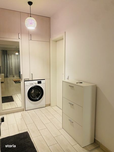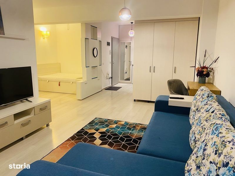 Studio complet mobilat si utilat cu suprafata de 43mp situat in zona Mall Coresi. Dispune de loc de parcare si boxa de depozitare. Studioul are bucatarie separata, zona de living, nisa de dormit, baie, hol si este prevazuta cu multiple spatii de depozitare.