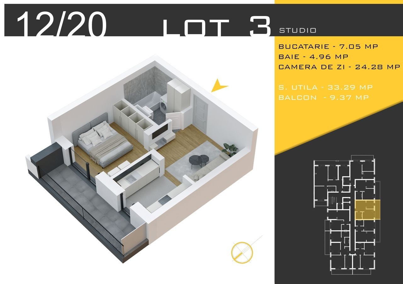 Direct Dezvoltator- Comision 0% Oferta completa pe bb-imobiliare.ro Nr telefon : Contactează * Oferta lansare proiect- discount 50% din pretul parcarii -oferta valabila pentru avans de 50% si 90% (pret parcare de la 7.000 euro + tva)* Pret promotional - avans 90% la antecontract : 72.000 Euro + TVA. Pret promotional - avans 50% la antecontract : 75.500 Euro + TVA. Apartamentul este amplasat la aproximativ 15 minute de mers pe jos fata de statia de metrou Nicolae Teclu si de mijloacele de transport in comun STB - tramvai si autobuz. In proximitate gasim : gradinite, scoli, parcuri, magazine si hipermarketuri : IKEA, Auchan, Lidl, Metro, Decathlon, JYSK, Mega Image, Dedeman, Leroy Merlin. Imobilul face parte dintr-un ansamblu de 4 blocuri cu regim de inaltime Ds+P+3Et, dotat cu lift modern si parcari subterane. Constructia imobilului este realizata pe cadre si plansee din beton armat, cu zidarie din caramida Porotherm/BCA. Bransarea se realizeaza la toate utilitatile sectorului 3: apa, canalizare, curent electric, gaze naturale. Apartamentul are o suprafata totala de 47.27 mp. Acesta este alcatuit din: un living cu bucatarie, un dormitor, o baie, hol,si un balcon. Caracteristici şi finisaje - Încălzire în pardoseală - comfort si economie de gaz. - Apartamentul se preda la cheie cu finisaje premium la agerea dvs. - Băi complet echipate, WC-uri cu rezervor încastrate si vasele WC suspendate - Tâmplărie PVC 5 camere - Lift hidraulic - Uşi metalice la intrare si celulare la interior - Acces privat in complex rezidential cu barieră - Locuri de parcare - Boxe individuale