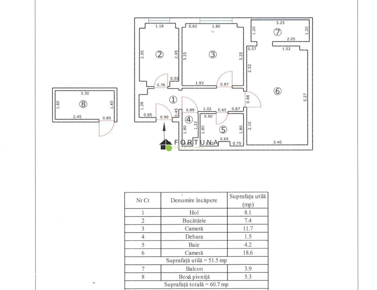 Fortuna Imobiliare va propune spre vanzare un apartament cu 2 camere, amplasat in Centrul Civic, pe Strada Toamnei, o zona deosebita cu numeroase facilitati si multiple puncte de interes, aproape de scoli si gradinite, cu acces rapid la mijloacele de transport in comun. Apartamentul are o structura decomandata si o suprafata totala incalzita de 55.4 mp. Este pozitionat la etajul 5 al unui bloc cu 6 niveluri, construit in anul 1984, in care accesul in scara este securizat. Interiorul apartamentului este renovat, cu materiale calitative si moderne, incalzirea fiind asigurata de o centrala termica proprie. Dispune de tamplarie PVC, parchet, gresie, faianta, usa metalica si boxa (beci) inscrisa in CF. Fiind luminos, practic si confortabil, poate fi apartamentul ideal prin transformarea lui in caminul mult visat sau poate fi un foarte bun activ pentru o investitie profitabila prin inchirierea acestuia. Pentru detalii suplimentare si stabilirea unei vizionari pot fi contactata atat telefonic, cat si pe e-mail. Comision cumparator 2% +TVA