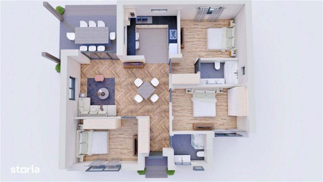 O casă superbă aflată în vecinătatea lacului Petrești, care îți oferă din primul moment senzația de „acasă”. Situată în mijlocul naturii, dar la doar câteva minute de toate facilitățile unui stil de viață modern, această proprietate îmbină perfect liniștea, confortul și accesibilitatea. Locuința se află la 2 minute de DN1, în zona dintre Balotești și Corbeanca, cu acces rapid către: supermarketuri (Carrefour, Mega Image), Hornbach, restaurante, cafenele, școli și grădinițe. Interiorul este inteligent compartimentat și cuprinde: un living generos și luminos, bucătărie, 3 dormitoare, 2 băi, terasă spațioasă. Podul casei poate fi folosit ca spațiu de depozitare. Suprafața utilă totală este de 109 mp, iar terenul măsoară 500 mp, din care 350 mp reprezintă spațiu verde, perfect pentru grădină, loc de joacă sau relaxare. Avantaje și beneficii suplimentare Materiale de construcție premium Încălzire în pardoseală Termoizolație din polistiren de 15 cm grosime Casă ridicată, aflată în stadiul de gri Încălzire prin pompă de căldură - eficiență maximă și costuri reduse O proprietate ideală pentru cei care își doresc un cămin modern, eficient energetic și amplasat într-o zonă cu adevărat specială.