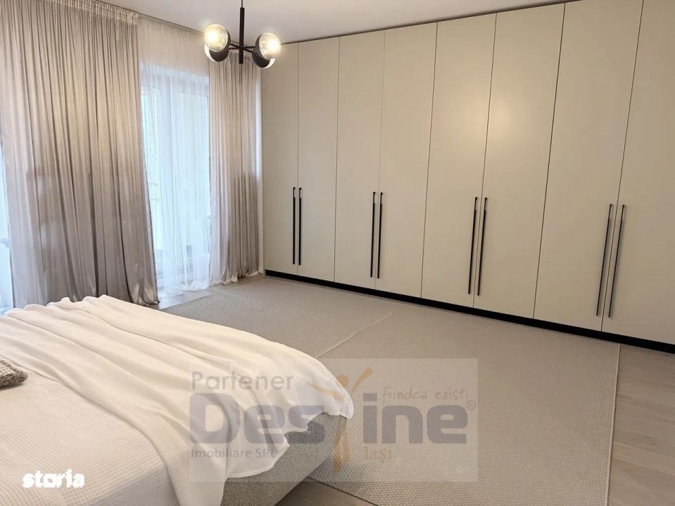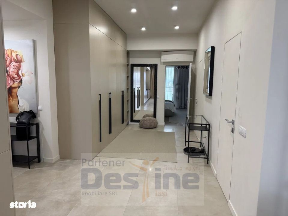 Propun spre vânzare un apartament deosebit cu 2 camere, cu suprafață totală de 103 mp, complet finisat și mobilat, situat la etajul 10 din 11 în ansamblul rezidențial Lazăr Residence. Locuința impresionează prin design modern, spații ample și două balcoane care oferă priveliști panoramice către Palatul Culturii și Splai Bahlui. Compartimentarea este optim gândită pentru confort: living cu bucătărie open-space, dormitor matrimonial cu dressing, două băi (una cu duș walk-in, cealaltă cu cadă), plus două balcoane generoase. Finisajele și dotările sunt de nivel premium: încălzire în pardoseală cu centrală proprie, mobilier realizat la comandă din MDF, piese din colecția Cavio Italia, uși Filomuro, iluminat modern și multiple spații de depozitare integrate. Bucătăria este complet utilată cu electrocasnice premium: frigider, plită electrică, cuptor electric, mașină de spălat vase, blat din ceramică, iar în zona de servicii este inclusă și mașina de spălat rufe. Localizarea reprezintă un avantaj major: într-un complex modern, bine întreținut, foarte aproape de Palas Mall, Palatul Culturii, zone de promenadă, restaurante, stații de transport și servicii esențiale. Apartamentul se vinde complet mobilat și utilat, exact ca în fotografii, având toate actele pregătite pentru vânzare. Preț: 350.000 € usor negociabil, cu posibilitate de achiziție cash sau prin credit. Prin colaborările noastre bancare, oferim consultanță completă pentru obținerea finanțării potrivite.