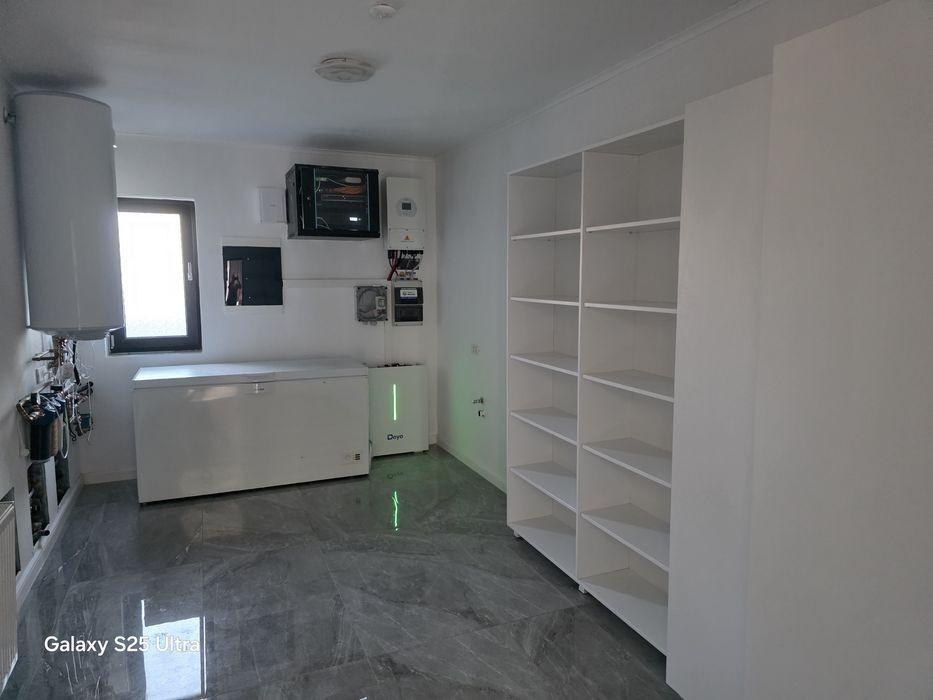 Casă modernă de vânzare în Timișoara ideală pentru locuință multifamilială sau firmă Strada Ulpia Traiană Nr 107 Vă propunem spre vânzare o proprietate deosebită situată în Timișoara, finalizată în anul 2025, construită pe un teren generos de 628 mp și având o suprafață construită de 213,4 mp. Imobilul este realizat pe o fundație solidă, conform proiectului de construcție, aceasta permițând extinderea cu încă un etaj + mansardă. Casa beneficiază de o izolație exterioară de 20 cm polistiren și de un acoperiș din panou sandwich, pentru eficiență energetică și durabilitate. Proprietatea poate fi compartimentată în 3 apartamente independente, fiecare camera are suprafață de 25mp cu propria bucătărie de 6mp și baie de 4mp. Separat avem la intrare o cameră de 28.3mp (680 410),cameră tehnica 13.1 mp Dotări și facilități Bucătării complet mobilate și utilate cu electrocasnice moderne Încălzire în pardoseală complet automatizată, cu control al temperaturii prin aplicație mobilă Centrală Buderus de înaltă performanță Sistem complet de alarmă, camere video și interfoane separate pentru fiecare apartament Toate sistemele inteligente, inclusiv deschiderea porții auto, pot fi controlate din aplicație Panouri fotovoltaice de 6 kW cu sistem de stocare de 10 kW Două panouri solare pentru apă caldă Climatizare Daikin în fiecare apartament Rulouri electrice Parcare interioară și spații verzi amenajate Accesul auto în curte se face printr-o poartă automatizată, acționată electric, care oferă confort și siguranță la intrare. - Avantaje suplimentare Vânzare direct de la proprietar fără comision! Se acceptă credit bancar Se accepta schimb cu teren,casă in zona Lipovei