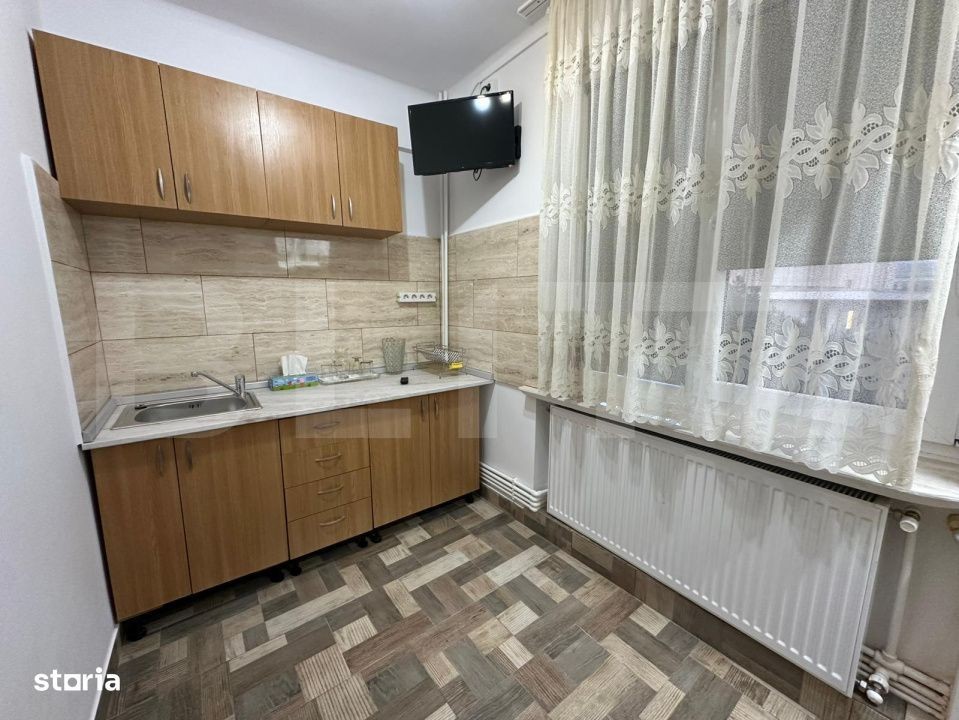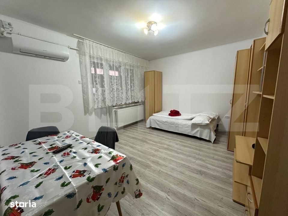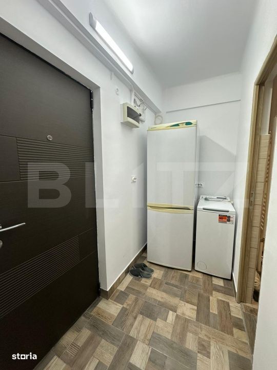 Blitz vă propune spre închiriere o garsonieră aflată la prima utilizare, situată la etajul 3 al unui bloc cu 4 niveluri, chiar în inima orașului. Spațiul este luminos, modern și pregătit să ofere confortul necesar unei locuințe complete, fiind dotat cu centrală termică, aer condiționat și toate electrocasnicele esențiale pentru un trai facil și plăcut. Localizarea este deosebit de avantajoasă: Universitatea din Craiova se află la doar câteva minute de mers pe jos, la fel și unele dintre cele mai cunoscute licee din oraș. În imediata apropiere se află și centrul vechi, cu acces rapid la cafenele, restaurante și zone de relaxare, ceea ce transformă această garsonieră într-o opțiune ideală pentru studenți, persoane singure sau cupluri care își doresc să locuiască într-o zonă centrală și dinamică. Pentru mai multe detalii și pentru programarea unei vizionări, vă stăm cu drag la dispoziție.