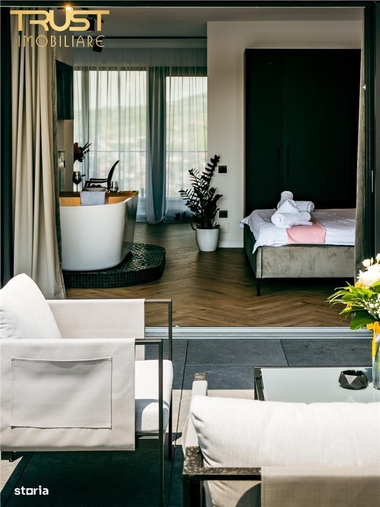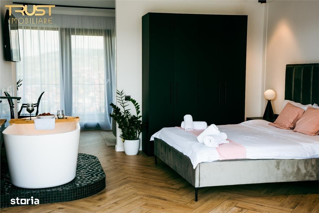 Pentru programari sunati doar la numarul: Contactează Evo Residence Panoramic, unul dintre cele mai spectaculoase apartamente din Cluj-Napoca, perfect pentru cupluri sau pentru un city-break memorabil! Apartamentul este situat în zona liniștită Vântului 74, la înălțime, oferind o vedere panoramică superbă asupra Clujului, atât ziua, cât și noaptea. Punctul central al apartamentului este cada amplasată lângă pat, ideală pentru relaxare și momente speciale. Interiorul este modern, luminos și amenajat cu atenție la detalii, pentru a oferi confort de hotel de 4 stele. Facilități incluse: Cadă cu view panoramic lângă pat Pat matrimonial confortabil Zonă de relaxare și spațiu generos Tv Smart + WiFi rapid Bucătărie utilată (frigider, plită, cuptor, espressor) Baie modernă Încălzire în pardoseală Parcare inclusă Self check-in Locație: Evo Residence Panoramic - Str. Vântului 74, Cluj-Napoca Preț: 600 lei noapte
