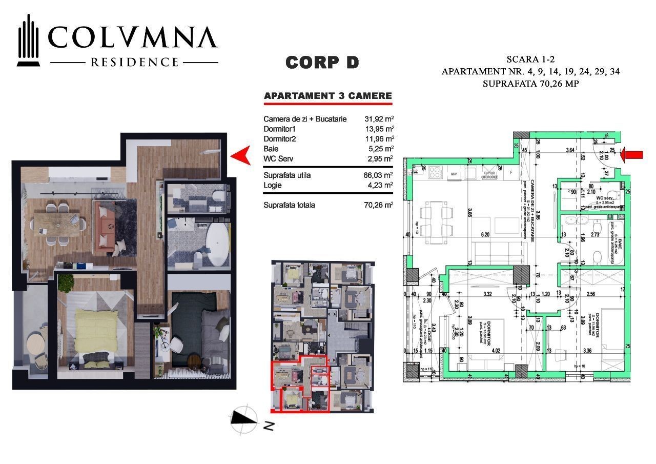 Apartament cu 3 camere, ultrafinisat, 70mp, Columna Residence - VIVO!