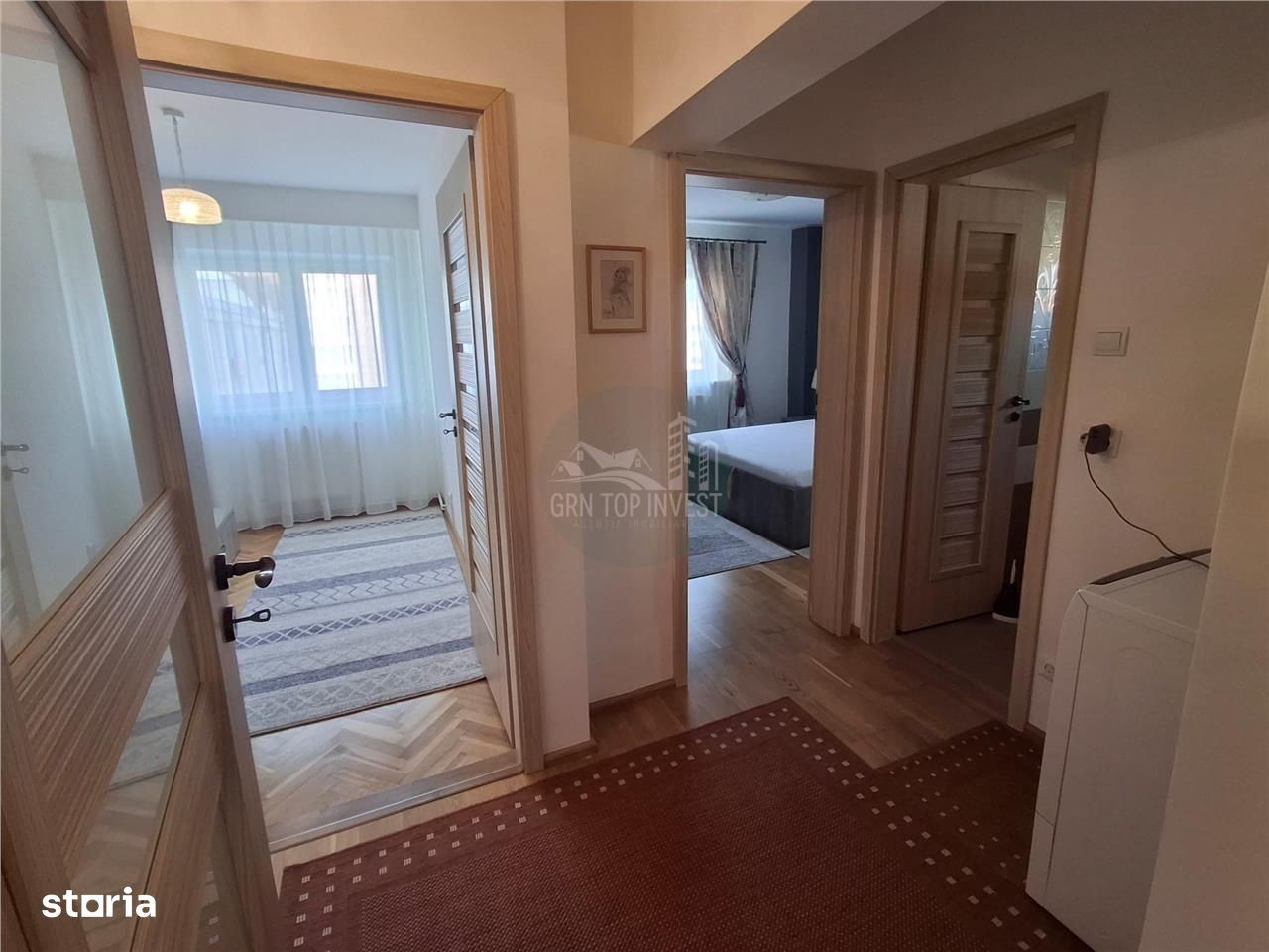 Agenția imobiliară GRN Top Invest vă propune spre vanzare un apartament, cu 3 camere decomandat, balcon si pivnita, situat în zona Parcul Sub Arini. Imobilul are o suprafață construită de aproximativ 96 mp, din care 80 mp reprezintă suprafața utilă, și este amplasat la etajul 4 al unui bloc cu 4 etaje, construit din cărămidă și izolat termic la exterior. Compartimentare practică și funcțională: la intrare regăsim un hol generos care face accesul separat in fiecare incapere, bucataria separata complet mobilata si utilata, o camara, livingul spatios si luminos ( 32mp care initial au fost doua camere), cu acces pe balcon si 2 dormitoare decomandate si 2 bai generoase, una dotata cu cada, iar cea de a 2-a baie este de serviciu si un dressing. Mai mult decat atat beneficiaza si de pivnita proprie de aproximativ 12mp. Dotări și finisaje: parchet laminat, gresie, faianță, geamuri termopan, centrală termică proprie etc. Apartamentul a fost recent renovat. Electrocasnice: plită pe gaz, cuptor electric, combină frigorifică, mașină de spălat rufe, TV etc. Apartamentul este situat într-o zonă de interes major, în imediata apropiere a numeroase puncte de interes: școli, grădinițe, farmacii, supermarketuri, spații verzi, precum și mijloace de transport în comun. Pretul de vanzare al acestui apartament este de 170.000 Euro, usor negociabil! ID ofertă: GRN1811
