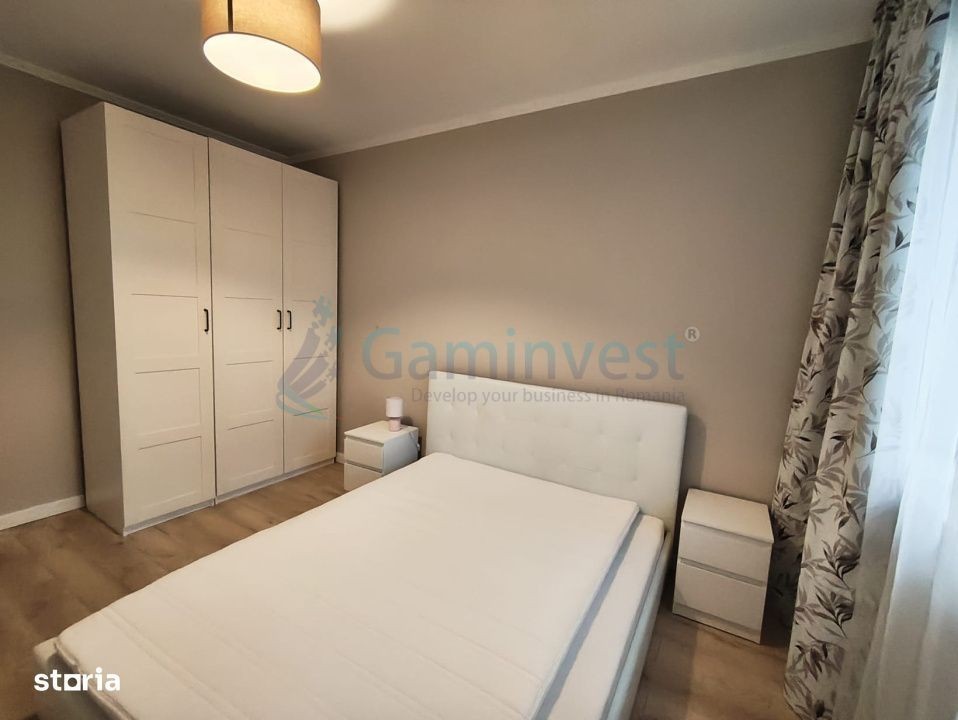 Gaminvest vă propune spre închiriere un apartament cu 3 camere situat în zona Prima Shops din Oradea, Bihor. Locuința, cu o suprafață de 58 mp, se află la etajul 5 al unui bloc modern dotat cu lift și impresionează prin compartimentarea eficientă: hol de acces, living cu bucătărie open space, două dormitoare, două băi și un balcon generos. Apartamentul se închiriază complet mobilat și utilat, fiind amenajat cu gust în tonuri calde, cu mobilier modern și finisaje de calitate. Beneficiază de toate dotările necesare pentru confortul zilnic - aer condiționat, mașină de spălat rufe, mașină de spălat vase, cuptor electric, plită, frigider și TV - astfel încât noul chiriaș să se poată muta imediat, fără griji. Încălzirea în pardoseală oferă un confort termic excelent în sezonul rece, iar sistemul de aer condiționat asigură răcoare în timpul verii.