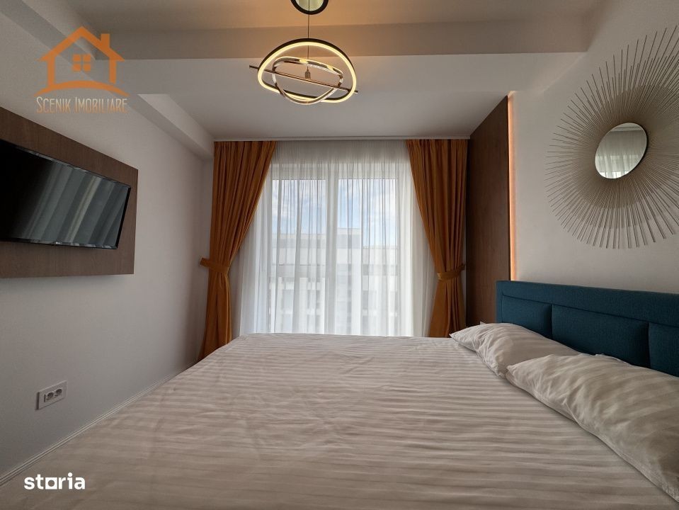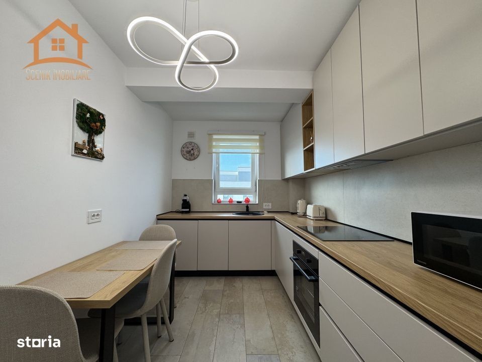Salutare! Agentia Scenik Imobiliare Brasov, prin brokerul imobiliar Nicolae Stoica, va propune spre inchiriere un apartament superb, mobilat si utilat modern, cu doua camere, situat la petajul 6 al unui imobil cu 6 etaje din cadrul complexului rezidential Coresi Avantgarden Brasov, faza Life Upgraded, str. Tudor Arghezi! Apartamentul este situat in cel mai titrat cartier din mun. Brasov, Coresi - Avantgarden - Kasper, fiind cu o structura decomandata, ceea ce il face extrem de util datorita compartimentarii - hol acces, living, dormitor, bucatarie, debara, baie si balcon! Suprafata utila a acestuia este de 53.6 mp la care se adauga balconul (3 mp) = 57 mpu (suprafata totala)! Apartamentul este mobilat si utilat modern, se inchiriaza dupa cum este prezentat! Acesta este utilat cu centrala proprie - caldura fiind realizata prin sistemul amplasat in pardoseala, electrocasnice de calitate, plita prin inductie, masina pentru spalat haine, masina pentru spalat vase, cuptor electric, hota, frigider! Deasemeni, in fiecare camere sunt montate smart-tv uri de calitate! In zona sunt amplasate nenumarate localuri de alimentatie publica, magazine, pizzerii, iar in apropiere este situat mall-ul Coresi, o locatie bine cunoscuta si apreciata atat de locuitorii frumosului nostru oras cat si de catre turisti! Zona este usor accesibila, ca si mobilitate pentru transportul local in zona fiind amplasate statii ratbv! Apartamentul are alocata o boxa pentru depozitare situata la demisol si un loc de parcare suprateran, ambele de o reala utilitate! Nu sunt acceptate animalele de companie! Nu se accepta fumatul in interiorul apartamentului! Perioada minima de inchiriere 12 luni! Se preteaza a fi inchiriat de catre o persoana sau un cuplu, oameni linistiti, care vor respecta proprietatatea ca pe bun ul propriu, persoane statornice, care-si pot permite plata chiriei si a utilitatilor! Intrucat v-am prezentat cele mai puternice motive in luarea deciziei, va astept cu drag la vizionare! Pretul de inchiriere al acestui apartament este de 720 euro, garantie 720 euro! Comisionul de intermediere standard, 50% din valoarea primei luni de chirie! NU SE ACCEPTA SUBINCHIRIEREA! Pentru alte detalii, cu drag aici la dispozitia dumneavoastra, Nicolae STOICA, Scenik Imobiliare Brasov! Tel/wapp