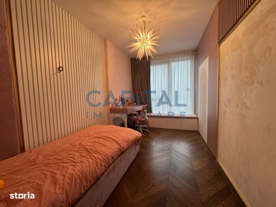 Capital Imobiliare propune spre vânzare, fără comision din partea cumpărătorului, un apartament modern cu 4 camere, având o suprafață utilă generoasă de 135 mp, situat la etajul 7 al unui bloc premium, construit din materiale de înaltă calitate și dotat cu tehnologie Smart de ultimă generație. Locuința are compartimentare decomandată și este compusă din: hol de intrare, living spațios, 3 dormitoare, dressing, 3 băi, 2 balcoane cu suprafața totală de 22 mp. Apartamentul se vinde împreună cu 2 locuri de parcare situate la subsolul clădirii. Pentru mai multe informații despre această proprietate deosebită, echipa Capital Imobiliare vă stă la dispoziție.