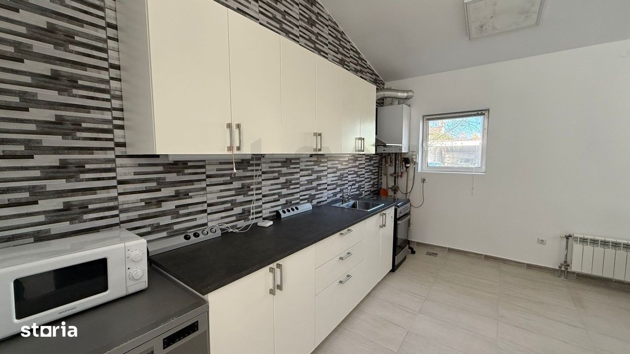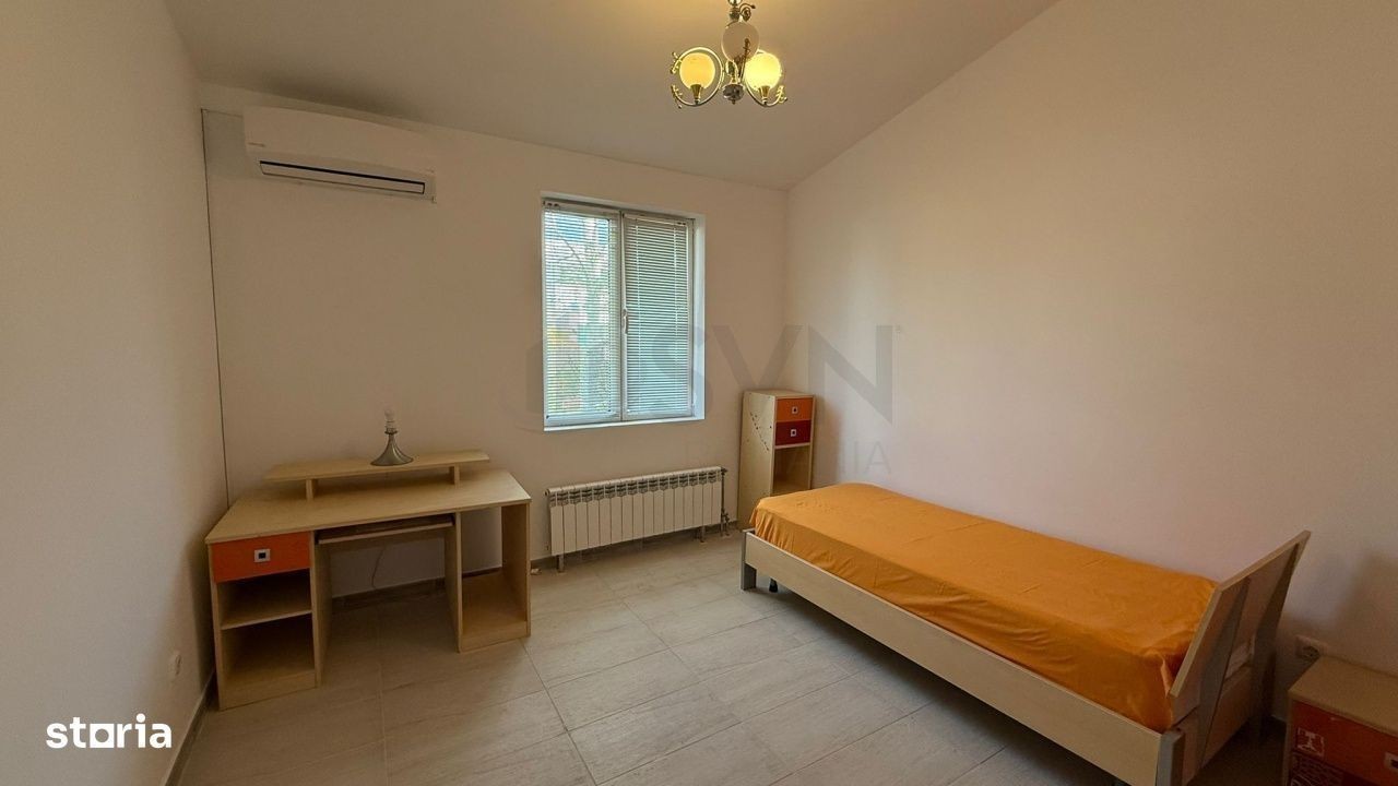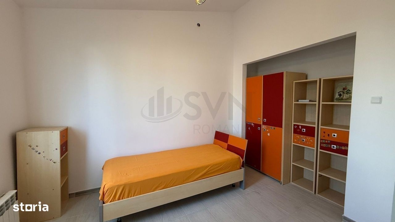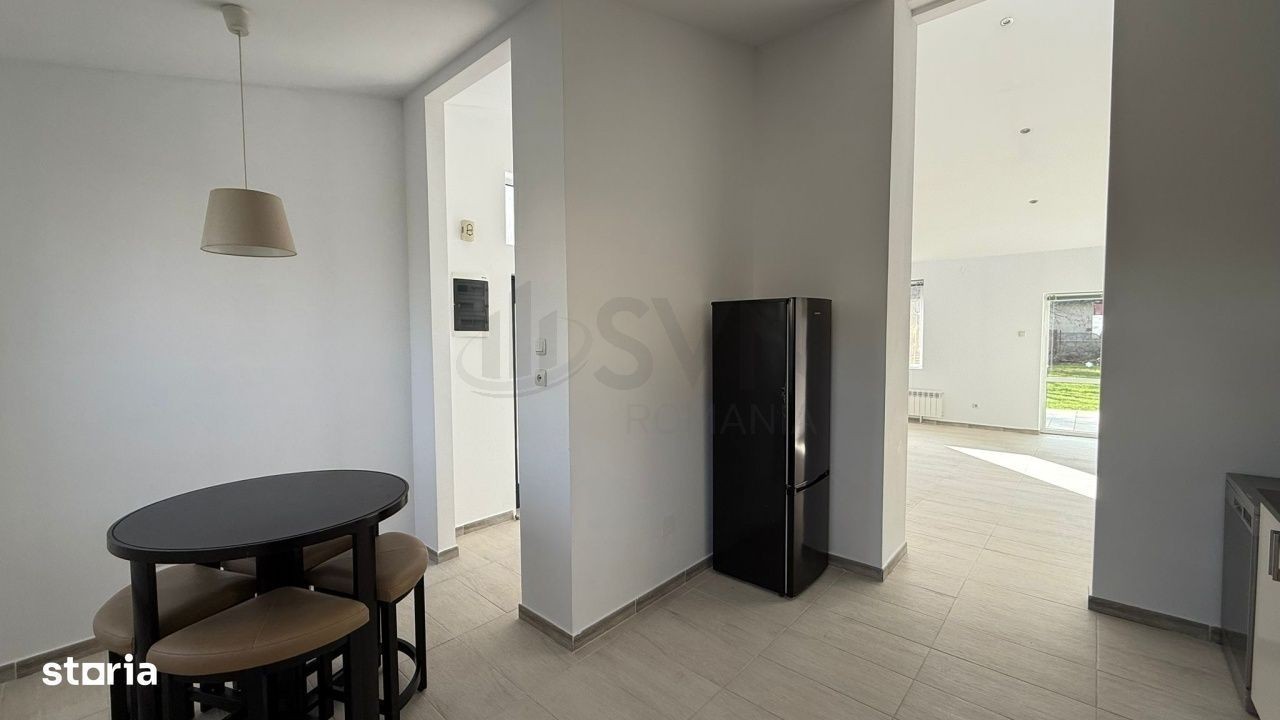 REV2005383 SVN Romania va propune spre inchiriere o proprietate deosebita situata in ansamblu Paradisul Verde, o zona recunoscuta pentru liniste, siguranta si aer curat. Casa este construita pe structura metalica, ceea ce ii confera durabilitate, rezistenta seismica sporita si o excelenta eficienta energetica. Proprietatea este amplasata pe un teren generos de 835 mp, oferind spatiu pentru amenajarea unei gradini ample, zone de relaxare sau loc de joaca pentru copii. Compartimentare interioara: Locuinta este inteligent compartimentata, ideala pentru confortul unei familii: Living luminos cu ferestre mari, ce ofera o priveliste frumoasa catre curte, bucatarie open-space moderna, integrata armonios in zona de zi, doua dormitoare secundare, potrivite pentru copii, birou sau hobby-uri, o baie complet utilata, deservind zona de zi si dormitoarele secundare, dormitor matrimonial generos, cu baie proprie, oferind intimitate si confort, garaj pentru protejarea masinii si spatiu suplimentar pentru depozitare. Locuinta se inchiriaza partial mobilata la 1200Euro sau 1800Euro mobilata complet. Alte avantaje: Constructie moderna pe structura metalica Potential ridicat de personalizare Locatie premium, intr-o comunitate selecta Pentru mai multe detalii va rugam sa ne contactati!