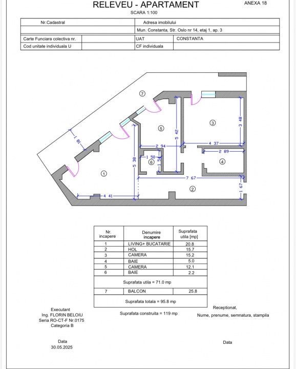 Maria Residence - locuința ta modernă în Tomis Plus Te invităm să descoperi Maria Residence, un bloc nou finalizat, situat pe strada Oslo nr. 14, în inima cartierului Tomis Plus. Imobilul este structurat pe P+4+SP.TH, dotat cu lift modern și construit la cele mai bune standarde. Tipuri de apartamente disponibile: 2 studiouri spațioase 11 apartamente cu 2 camere 3 apartamente cu 3 camere Suprafețe utile: De la 37,17 mp + balcon 12,02 mp până la 71,93 mp + balcon 22,21 mp - ideale pentru un stil de viață modern și confortabil. Prețuri atractive: Începând de la 60.000 € + TVA până la 112.000 € + TVA, cu posibilitatea de achiziție la stadiul de “alb” sau complet “la cheie” contra cost, după preferințele tale. Parcare acoperita: 5.000 euro + TVA Localizarea excelentă, liniștea zonei și accesul rapid către punctele de interes fac din Maria Residence alegerea perfectă pentru o locuință proprie sau o investiție sigură. Pentru detalii și programarea unei vizionări, nu ezita să ne contactezi!