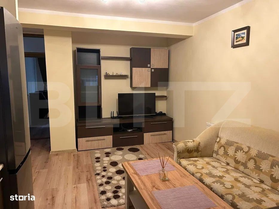 Descoperă rafinamentul unui apartament cochet, gândit pentru cei care apreciază confortul modern și liniștea unei zone exclusiviste. Spațiul semidecomandat este inteligent compartimentat, oferind o atmosferă caldă și primitoare în fiecare colț. Dormitorul generos te întâmpină cu un pat matrimonial confortabil, un birou ideal pentru lucru sau studiu și un dulap spațios perfect organizat. Livingul luminos, configurat în sistem open space, se contopește armonios cu bucătăria complet mobilată și utilată, creând un spațiu ideal atât pentru relaxare, cât și pentru momente culinare inspirate. În plus, o debara discretă îți oferă spațiul suplimentar de depozitare atât de necesar. Baia modernă, dotată cu duș și iluminată natural datorită geamului exterior, adaugă un plus de eleganță și prospețime, în timp ce holul bine proporționat completează cu succes atmosfera casei. Apartamentul este echipat cu toate facilitățile esențiale pentru un trai fără griji: centrală proprie, mașină de spălat, frigider, aragaz, hotă, TV, cuptor cu microunde și multe altele. Localizat într-o zonă deosebit de liniștită, într-un imobil cu doar 8 apartamente, pe o stradă închisă cu trafic redus și vecinătate preponderent de case și imobile cu regim mic de înălțime, locuința oferă o oază de calm în proximitatea punctelor de interes: stații de transport în comun, baza sportivă Gheorgheni și Iulius Mall. Parcarea privată din curtea interioară este un adevărat atu, iar caracterul pet friendly al apartamentului îl transformă într-un cămin ideal pentru tine și companionii tăi patrupezi. Un spațiu primitor, cu un aer intim și elegant, gata să devină noul tău acasă.