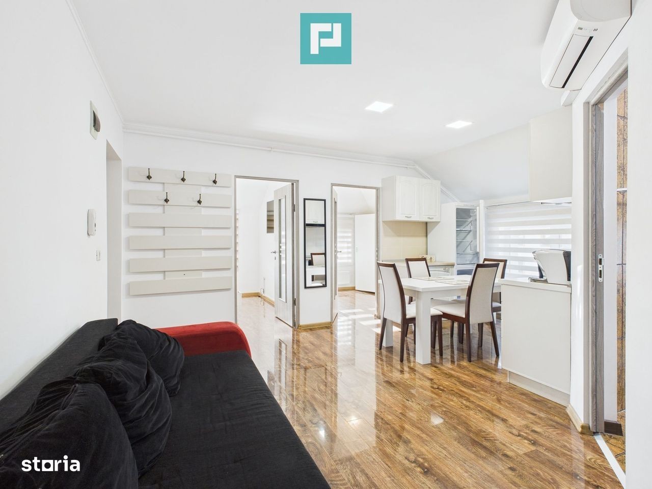 PropertyLab vă prezintă spre închiriere un apartament modern cu 2 camere, situat într-un bloc de construcție nouă, la etajul 3 din 3. Locuința are o suprafață utilă de 42 mp, compartimentare semidecomandată și se închiriază complet mobilată și utilată, fiind pregătită pentru mutare imediată. Caracteristici apartament: • 2 camere (living + dormitor) • Bucătărie complet utilată • Baie modernă • Etaj 3/3 • Semidecomandat • Aer condiționat • Mobilier și electrocasnice în stare excelentă Facilități ale blocului / complexului: • Construcție nouă • Supraveghere video • Centrală proprie (costuri reduse) • Curte comună îngrijită • Loc de joacă pentru copii • Parcare deschisă Avantaje zonă: • Acces rapid la mijloace de transport în comun. • Aproape de magazine și alte puncte de interes. Acest apartament este ideal pentru o persoană sau un cuplu care caută confort, siguranță și conectivitate excelentă. Telefon: