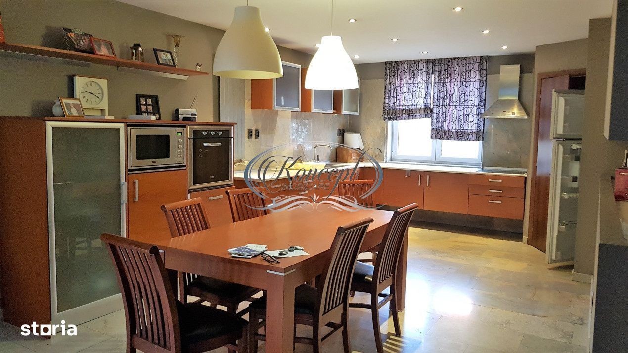 Koncept Imobiliare va ofera spre inchiriere o casa insiruita, frumoasa in cartierul Buna Ziua, zona linistita, in apropierea mijloacelor de transport in comun. Casa are suprafata utila de 280mp, plus un garaj subteran pentru 2 masini, 3 balcoane, curte, unde mai poate fi parcata o masina si gradina. Este dispusa pe 4 niveluri: Demisol: unde sunt 2 parcari, camera tehnica impreuna cu spalatorul, o camera pentru depozitare, o mica sala de sport; Parter: bucatarie mare si camara, living foarte spatios cu loc de servit masa, camera tehnica unde este si spalatoria, baie; Etajul: 3 dormitoare - unul matrimonial cu baie proprie si balcon, celelalte 2 dormitoare, o baie cu geam, un balcon comun si dressing-uri incapatoare; Mansarda: o camera cu baie, sauna si balcon. Pentru informatii complete, programarea unei vizionari sau pentru a afla oferta noastra completa va stam la dispozitie telefonic, prin e-mail sau la sediul agentiei noastre, pe str. Aviator Badescu, nr. 19, Cluj-Napoca.