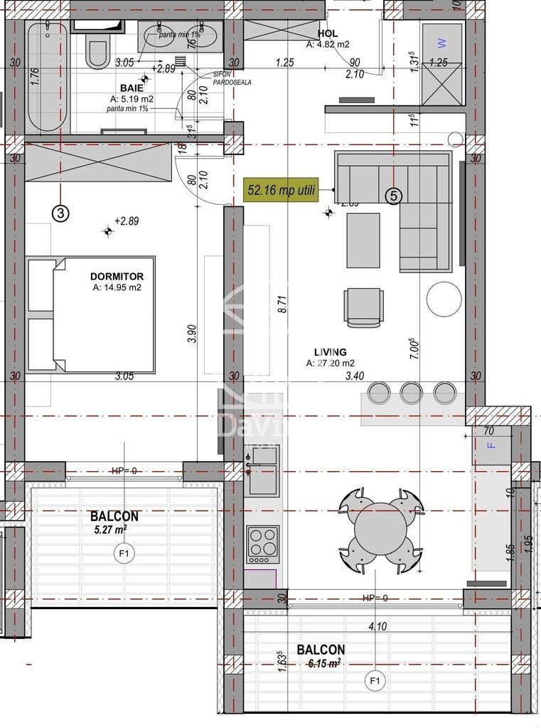 Dezvoltator imobiliar, va propune spre vanzare un apartament cu 2 camere, cu bucatarie separata, cu o suprafata utila de 54.12 mp si beneficiaza de o logie cu suprafata de 14.42 mp. Imobilul este intabulat si se preda la stadiul de finisat la cheie. Acesta poate fi achizitionat si cu ajutorul unui credit bancar. Caracteristici tehnice de constructie: - Eficienta energetica prin: izolatie cu vata bazaltica, incalzire in pardoseala, centrala termica in condensatie, tamplarie PVC cu 5 camere si 3 foi de sticla, jaluzele electrice pe partea sudica - Balcon finisat cu granit si balustrada din sticla securizata - Casa scarii placata cu granit - Fatada decorata cu larice siberian si piatra naturala. Caracteristici ansamblu rezidential DaVinci Homes: - 45% din suprafata destinata spatiilor verzi - Sistem automatizat de irigatie pentru spatiile verzi - Arbori ornamentali maturi inca din prima zi - Priveliste panoramica spre munti - Orientare sudica pentru toate balcoanele - Locuire in vile cu 6, 9 sau 12 apartamente - 4 intrari si iesiri in cadrul ansamblului - Locuri de joaca amenajate in cartier - Locuri de parcare incluse - Drumuri complet pavate - Vile construite in trepte de nivel Imobilul este situat in cartierul rezidential DaVinci Homes, in zona de Vest a orasului Sibiu. (apartamentul nr. 5 vila 19A) Vino in ansamblul nostru, programeaza acum o vizionare.