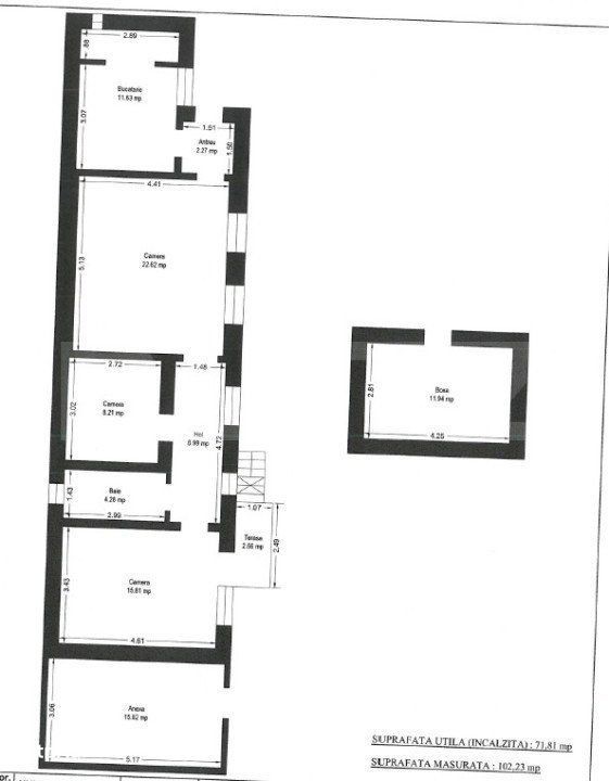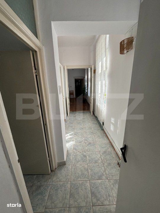 Blitz iti propune spre achizitie acest apartament cu 3 camere, situat într-o clădire din 1935- îmbină farmecul construcțiilor istorice cu oportunități moderne de personalizare. Cu două intrări separate, locuința îți oferă flexibilitate în amenajare și utilizare. Una dintre intrări include o terasă mică, care poate fi extinsă pentru a crea un spațiu mai generos de relaxare în aer liber. Apartamentul păstrează elementele autentice ale acelor timpurii: tavane înalte, ferestre mari, parchet original parțial și tocărie din lemn, fiind construit solid, din cărămidă, cu demisol. Partea din clădire în care se află a fost renovată și beneficiază de izolație exterioară, asigurând confort termic. Pe lângă cele 3 camere, proprietatea include o anexă lipită de clădire-garaj, care poate deveni o a patra cameră, un spațiu de locuit confortabil sau un birou modern, sau il puteti folosi ca si garaj. În prezent, apartamentul funcționează ca birou, dar poate fi ușor transformat într-o locuință primitoare. A fost parțial renovat, oferindu-ți ocazia să personalizezi finisajele în funcție de dorințele tale. Situat într-o zonă semicentrala, cu vecini de treabă și înconjurat de spațiu verde, apartamentul oferă un colț de relaxare în mijlocul orașului. Locația sa strategică, aproape de zona centrală, îți asigură acces facil la școli renumite, magazine, clinici și alte facilități urbane. Nu te limita la imagini - acest apartament are mult mai multe de oferit. Sună acum și hai să descoperim împreună potențialul său la o vizionare! Apartamentul se poate prelua cu chiriasii actuali, chiria fiind de 500e/luna.