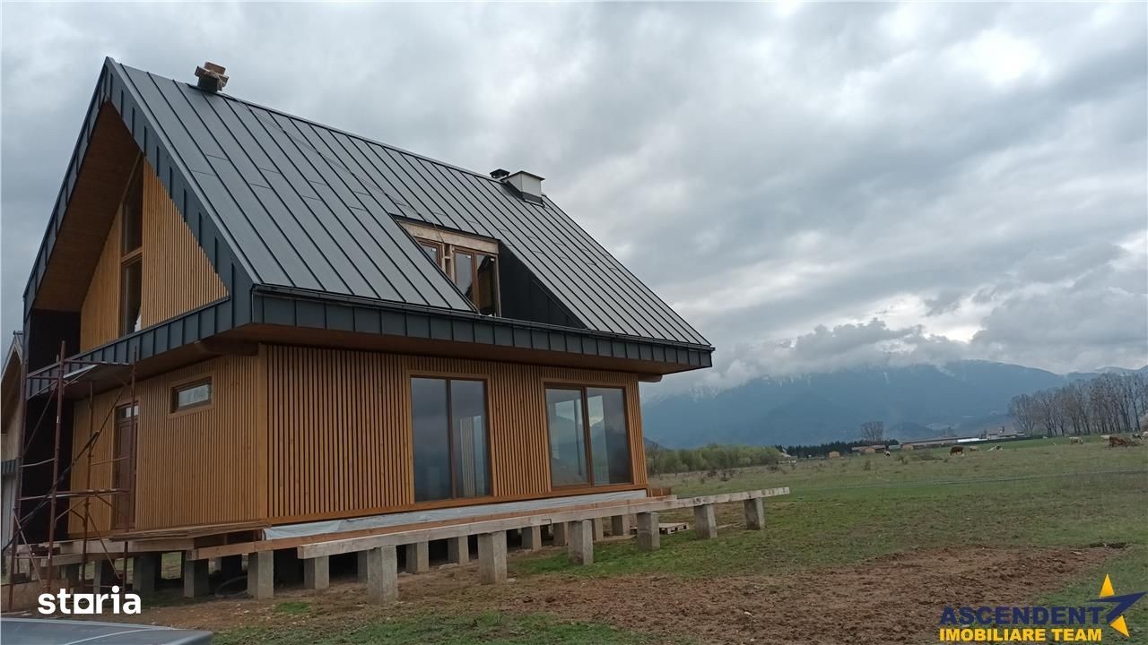 Comision cumparator 0% ASCENDENT IMOBILIARE Brasov, va propune spre vanzare o casa ergonomica, armonios integrata intr-un decor natural spectaculos, cu vedere larga spre Bucegii impunatori, silueta calcaroasa a Pietrei Craiului, versantii impaduriti ai Postavarului si silueta istorica a Cetatii Rasnovului, unde se intalnesc linistea pe care o cauti si independenta energetica apreciata. Va invitam sa experimentati o vizionare initiala, din locatia unde va aflati, chiar acum, prin accesarea a filmului de prezentare: Film prezentare: s: watch?v=fGo7H6WKskk Construita pentru confort si eficienta, proprietatea beneficiaza de un kit fotovoltaic Off Grid de 10 KW, cu stocare de 30 KWh. Pompa de caldura aer-apa split cu boiler incorporat de 190 litri LEADER-UE. Apa e obtinuta printr-un put forat la 75 m adancime. Apele menajere sunt evacuate in fosa septica de 2000 l. Farmecul este completat de un semineu primitor, ideal pentru serile reci petrecute in living. Designul avangardist, materialele atent selectate si functionalitatea bine gandita fac din aceasta oferta alegerea pentru o locuinta permanenta, o resedinta de vacanta sau o investitie in regim hotelier de lux. Consilier dedicat alesei oferte: doamna Lucia Demco Telefon WhatsApp: