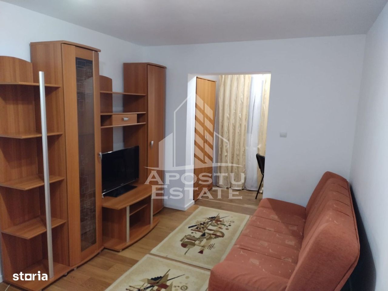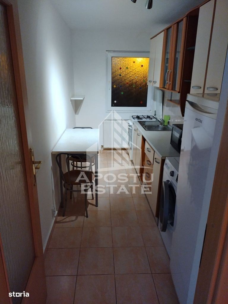 APOSTU ESTATE vă propune spre închiriere un apartament spațios cu 1 camera, situat într-o zonă liniștită și bine conectată din Aradului, ideal pentru studenti sau persoane care doresc un spațiu confortabil. Suprafață utilă: 30 mp Compartimentare eficientă: Hol de acces Bucătărie complet mobilată și utilată, cu loc de luat masa Camera dotata cu pat dublu si canapea extensibila Baie principală cu cadă și geam pentru ventilație naturală Confort și facilități: Apartamentul se afla la parter Apartamentul este complet mobilat și utilat Localizare: Zona Aradului - liniște, acces facil spre oraș, în apropiere de magazine, școli și mijloace de transport în comun. Ideal pentru: Studenti Cupluri Profesioniști care lucrează remote sau au nevoie de birou acasă Preț chirie: 275E Programează o vizionare! ID intern: CP2853361