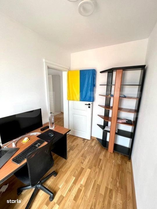 Blitz va propune spre inchiriere un apartament mobilat modern de 2 camere + o camera mai mica tip Office space. Acesta este situat in zona strazii Marasesti, cartierul Marasti. Se afla la 10 minute de mers pe jos pana in Mihai Viteazul iar la o mica distanta de Profi city, farmacie, mijoacele de transport si Sala de fitnes World Class. Imobilul se afla intr-un complex nou construit 2021, la etajul 6 din 6. Compartimentarea fiind semidecomandat si gandita astfel: Living open space cu bucatarie, 2 dormitoare, baie cu cabina de dus si balcon deschis. Apartamentul este dotat cu electrocasnice de cele mai inalt nivel : masina de spalat rufe, TV, AER CONDITIONAT, cuptor electric cu plita pe inductie, cuptor, frigider si hoter. In pretul de inchiriere se ofera si un loc de parcare subteran. Se inchiriaza complet mobilat si utilat. Disponibil din 19 septembrie