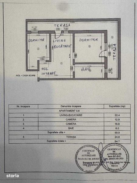 Vand apartament 60 mp utili 28 mp terasa 1 parcare in Cluj-Napoca, str Colinei Nr 22. Apartamentul este compus din living cu bucatarie, 1 baie, 2 dormitoare, balcon. Apartamentul este finisat, la cheie,inclusiv mobilier cu toate utilitatile: apa, canalizare, curent electric, gaz,ceasuri individuale interfon, internet, poarta cu telecomanda, sistem de supraveghere video. Apartamentul nu se poate achizitiona cu credit deoarece reprezinta cota parte dintr-un apartament mai mare.